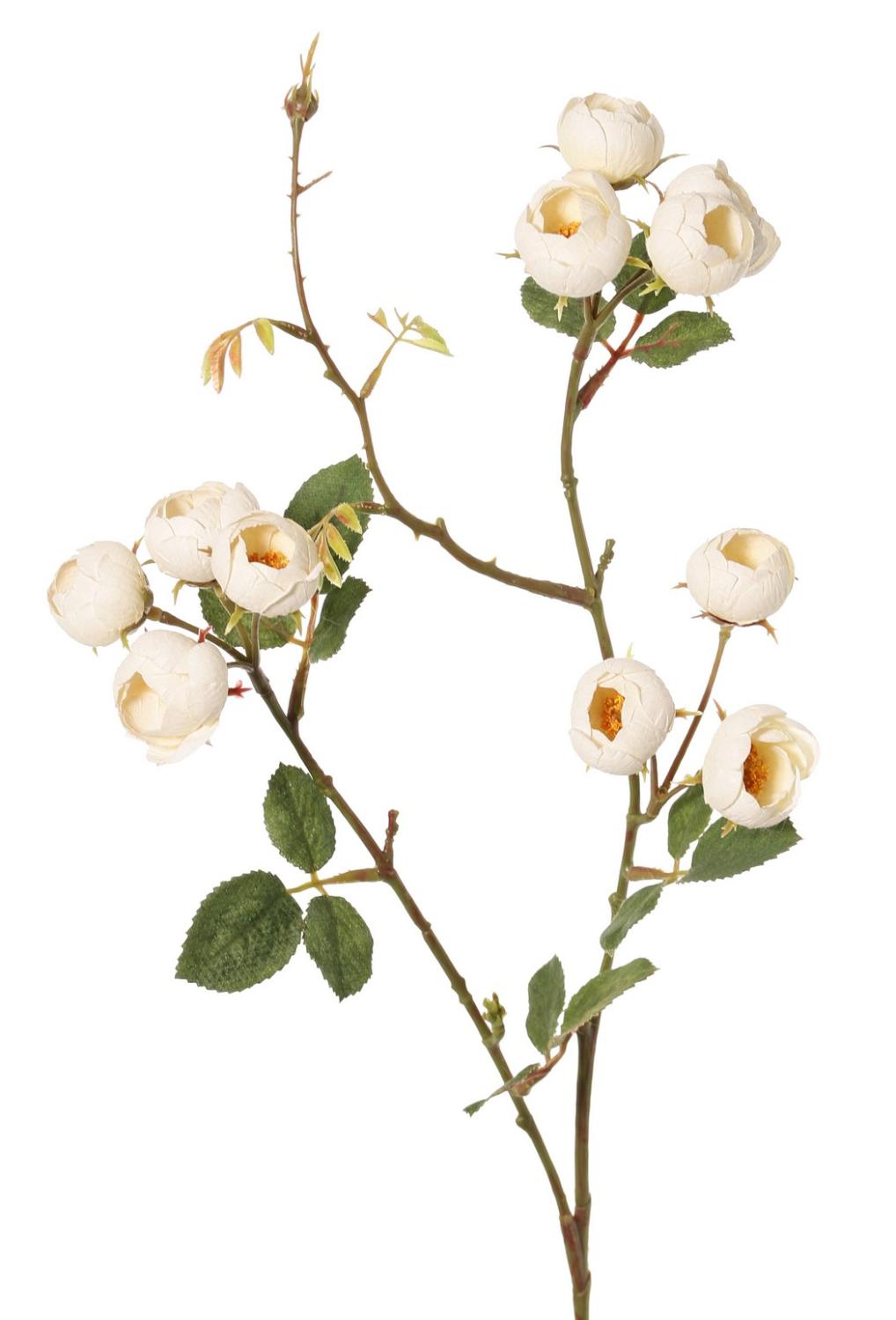 Branche de rose-chou artificielle LORRAINE, collection écologique, crème-jaune, 65cm, Ø2,5cm