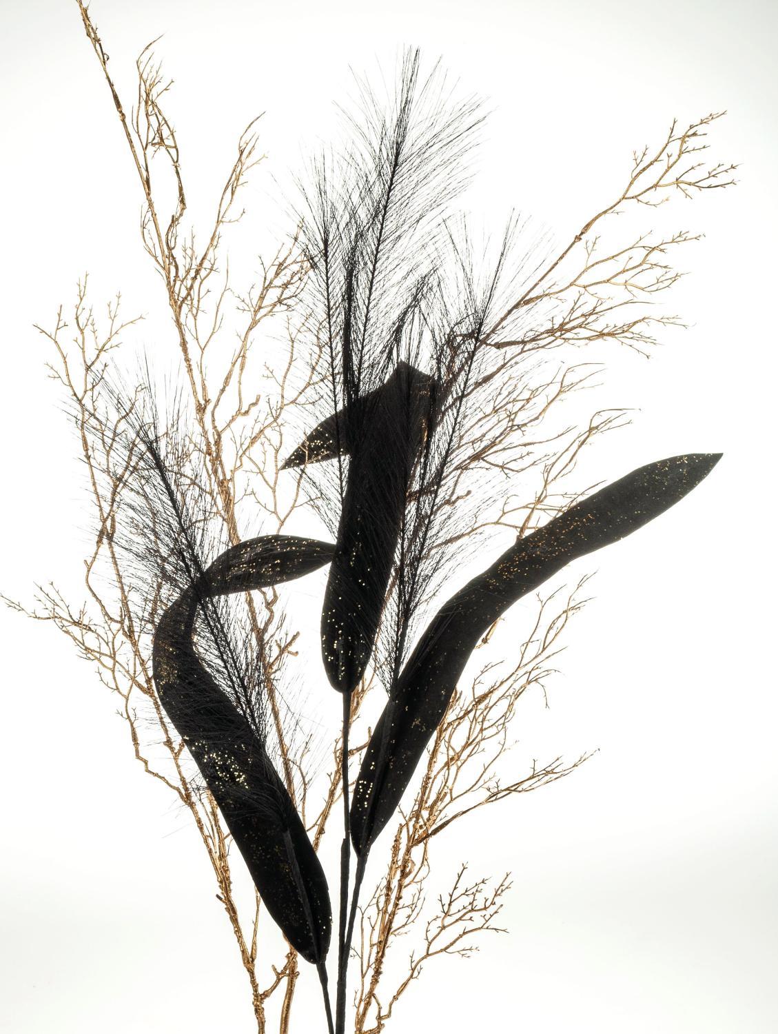 Branche de roseau en mousse synthétique ZIGOR avec des paillettes, noir, 110cm