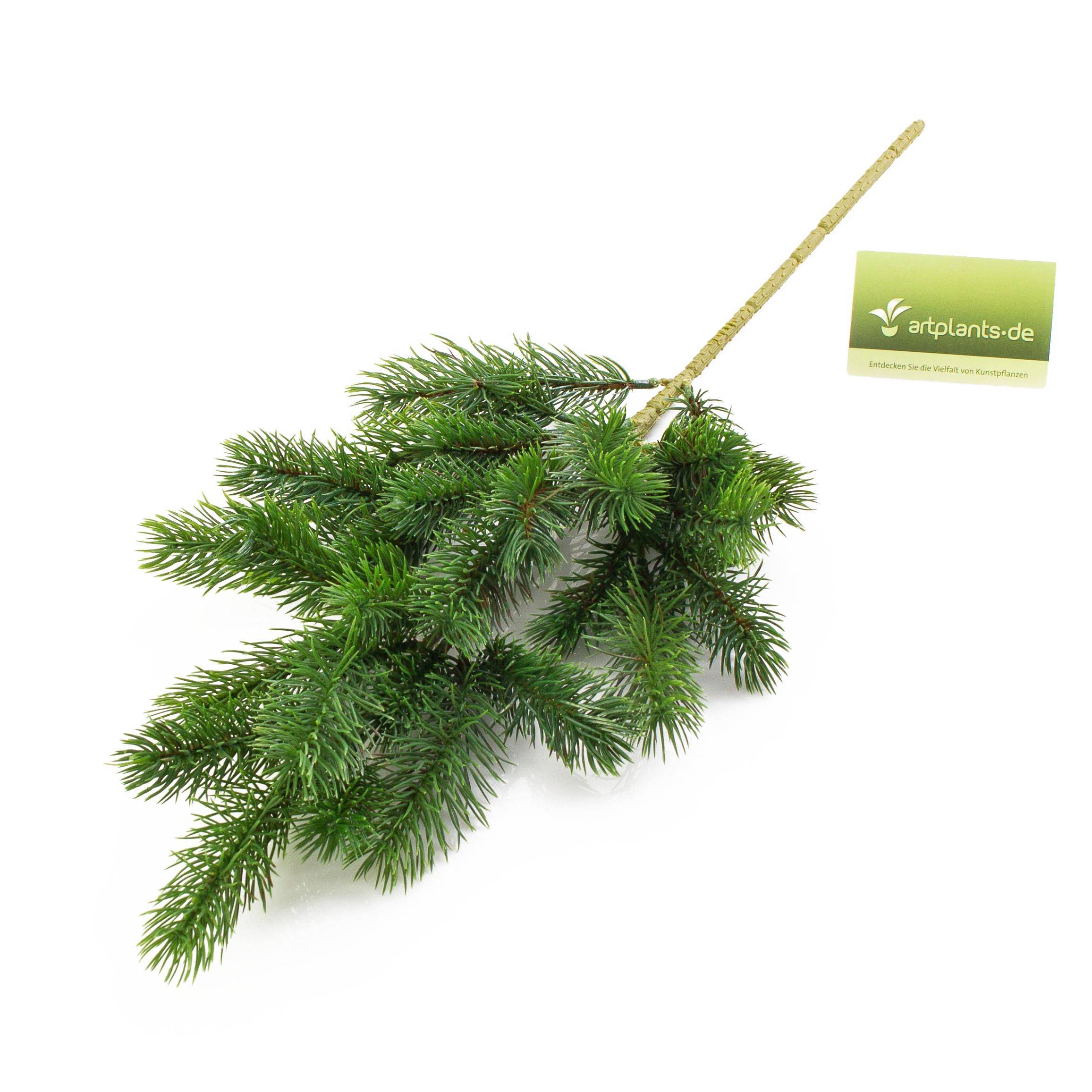 Branche de sapin artificielle pourvu d'aiguilles PE (moulées par injection). Cette branche mesure au total environ 60 cm de long.