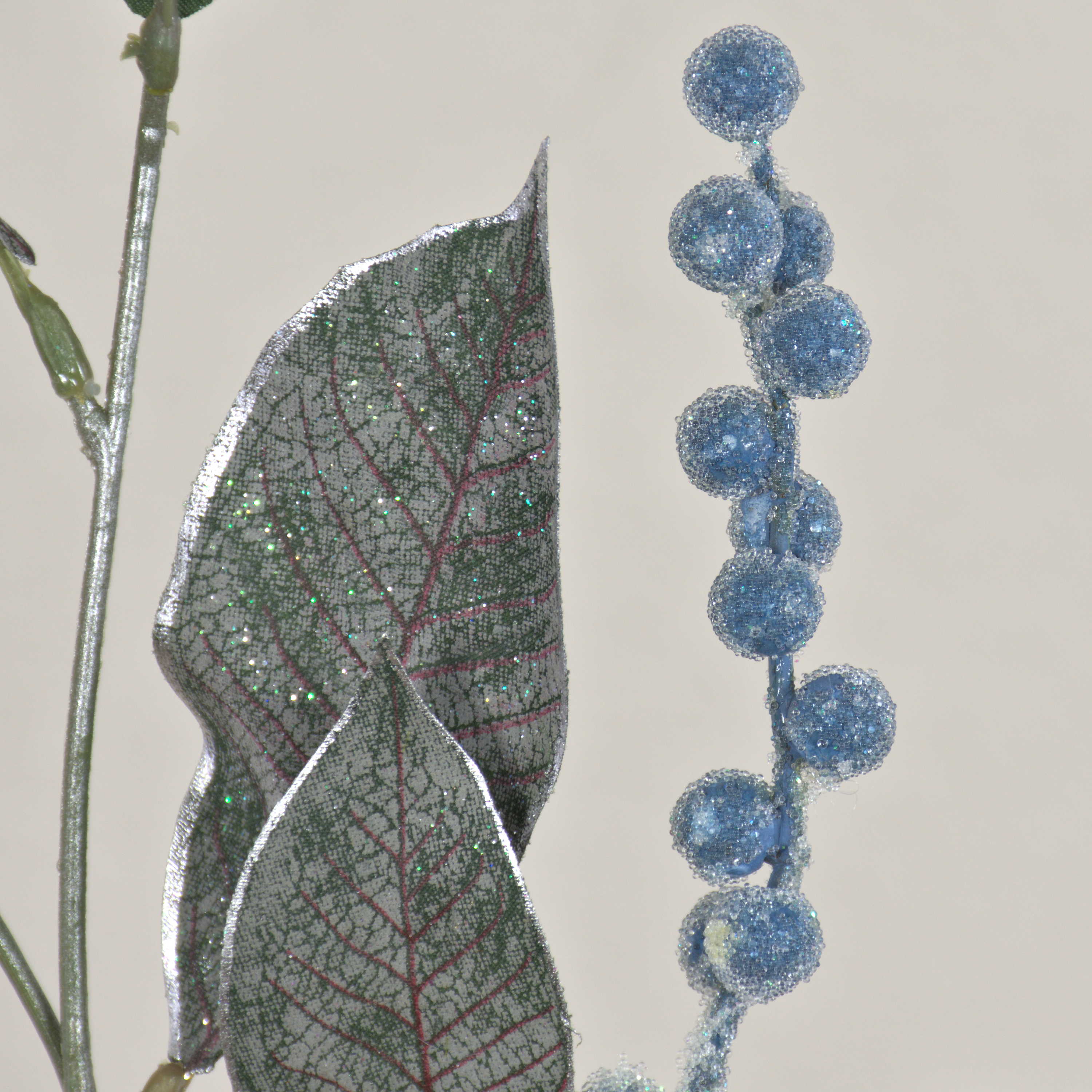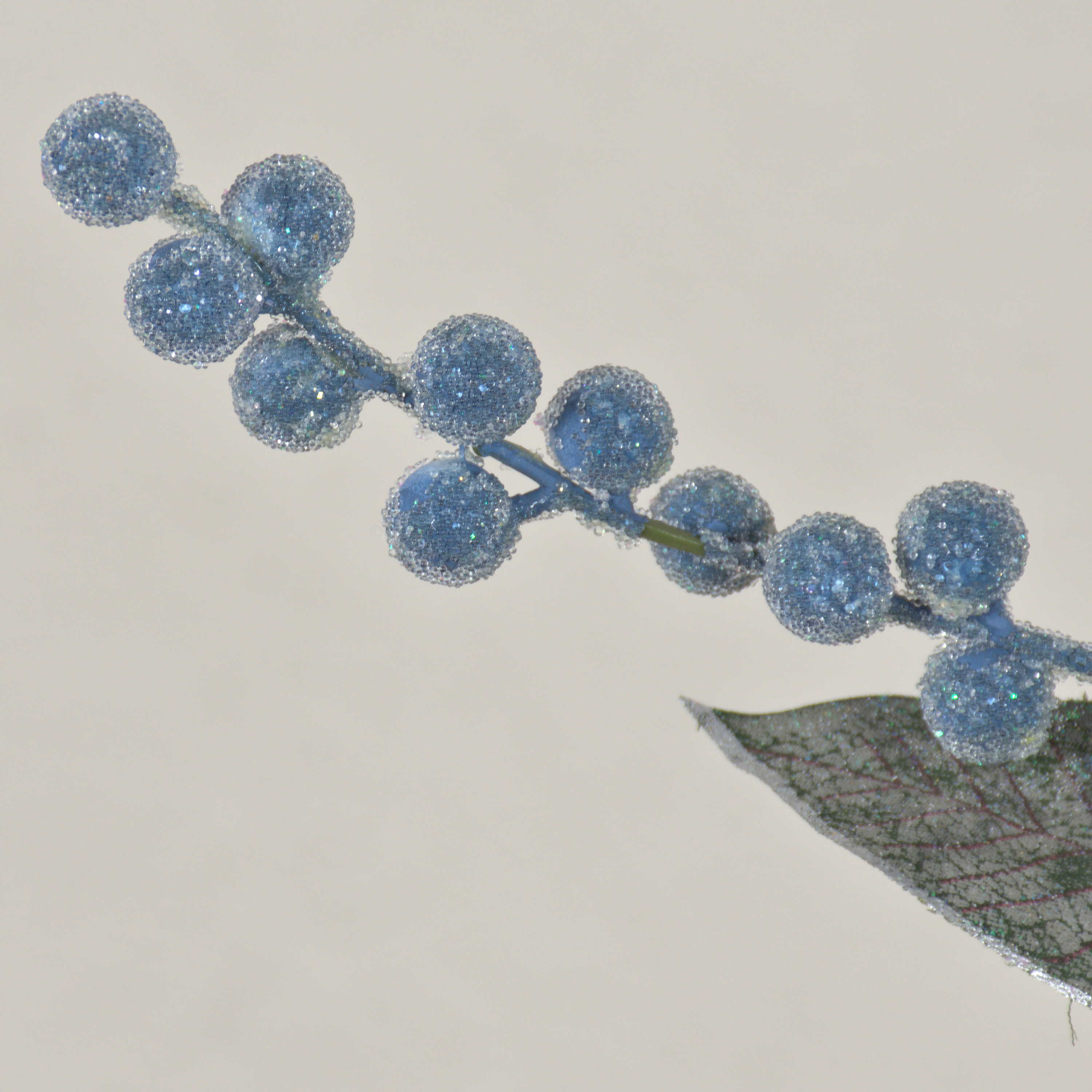 Branche de symphorine artificielle ELYSA, givrée, bleu, 75cm