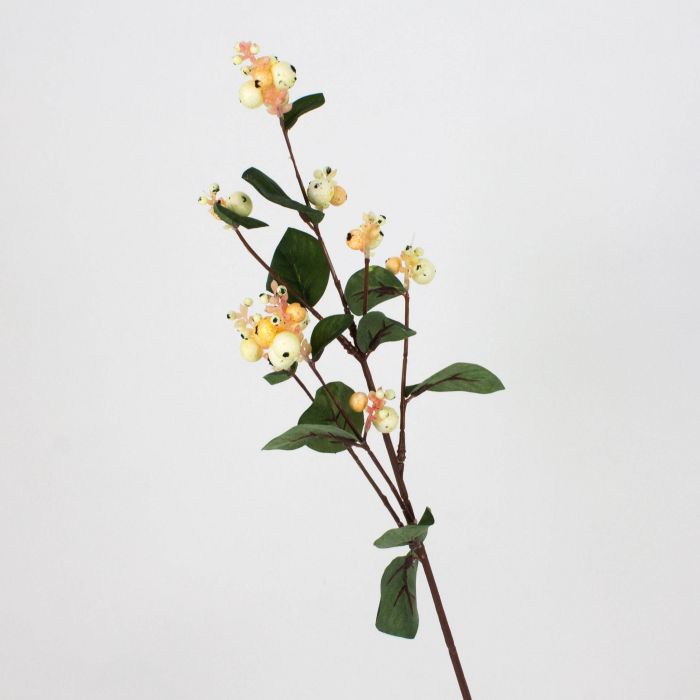 Branche de symphorine synthétique de couleur abricot-crème mesurant au total environ 50 cm de long.