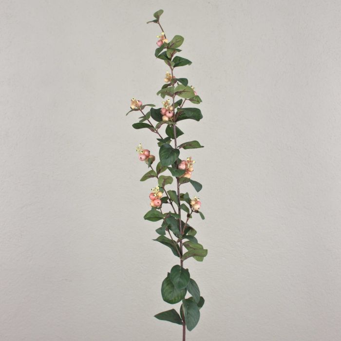 Branche de symphorine synthétique de couleur rose-abricot mesurant au total environ 97 cm de long.