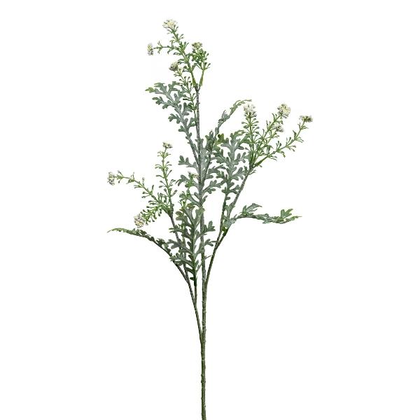 Branche décorative de séneçon cinéraire KRANVE avec des fleurs, gris-vert, 60cm