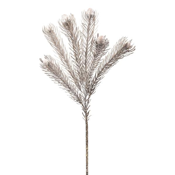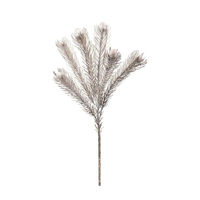 Branche décorative Leucospermum Protea ZANLI, givré, gris, 50cm