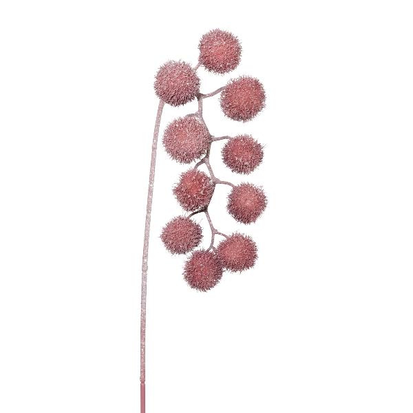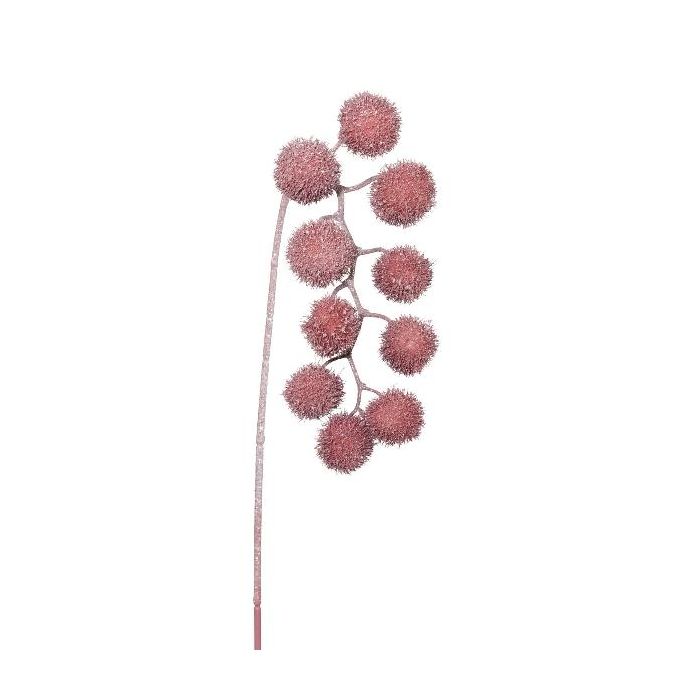Branche décorative Platane FLERMO avec des fruits, suspendu, givré, vieux rose, 60cm