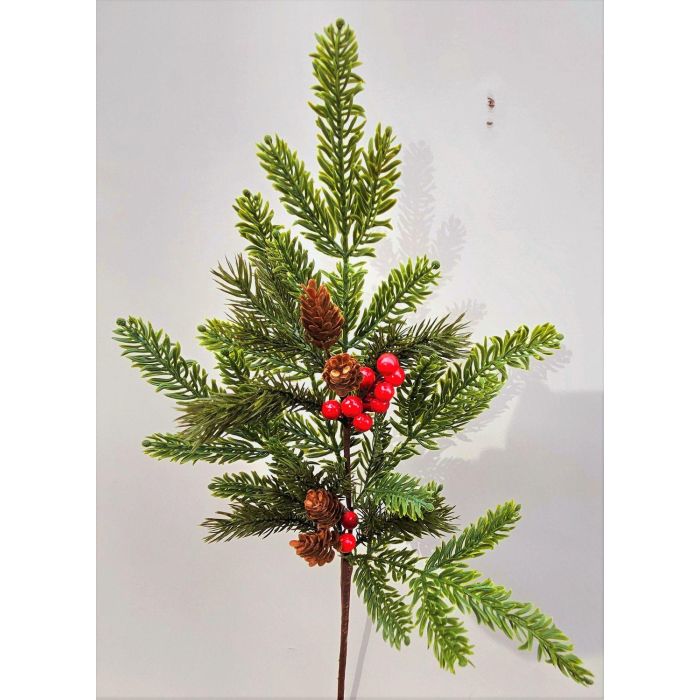Branche décorative VARDALIA, sapin, baies, pommes de pin, rouge-vert, 75cm