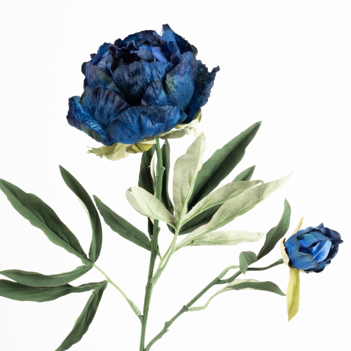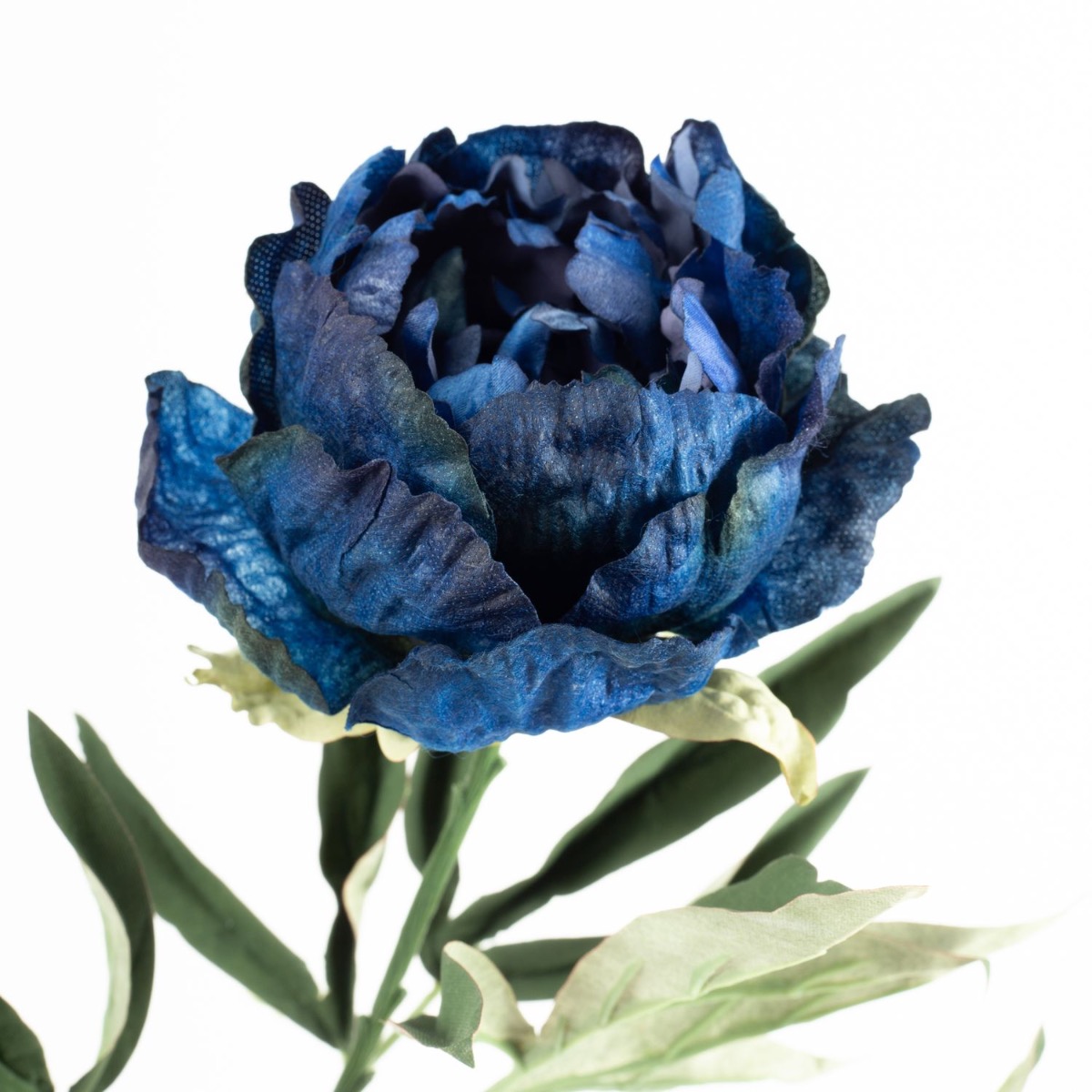 Branche fleurie artificielle Pivoine GALENE, collection écologique, bleu royal, 65cm, Ø10cm