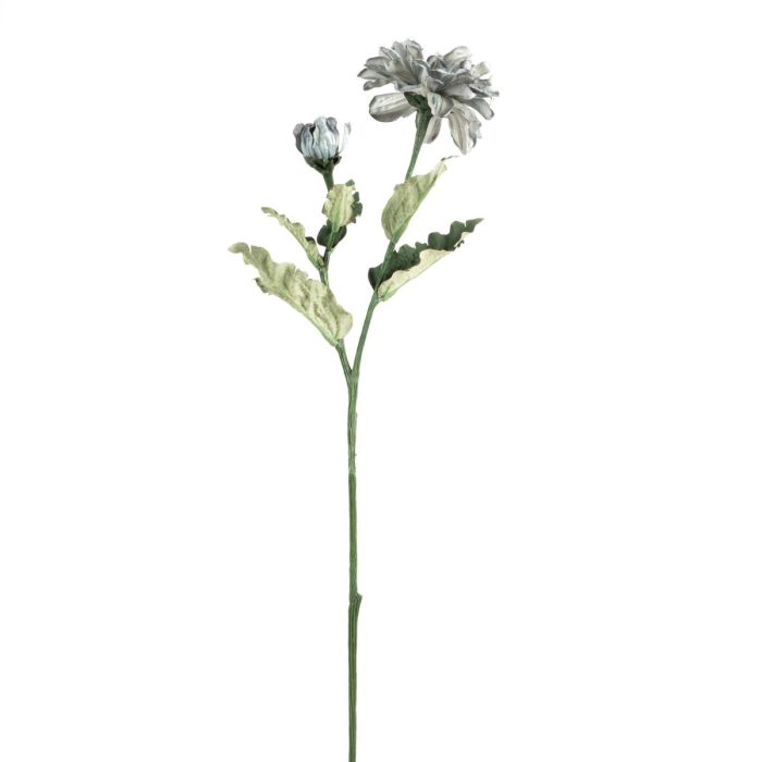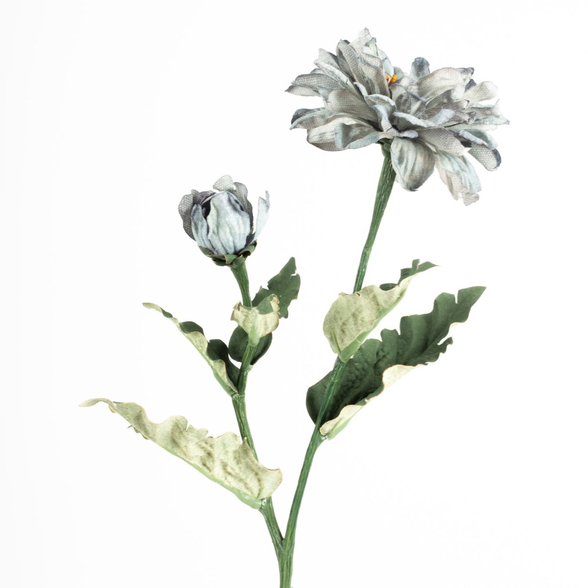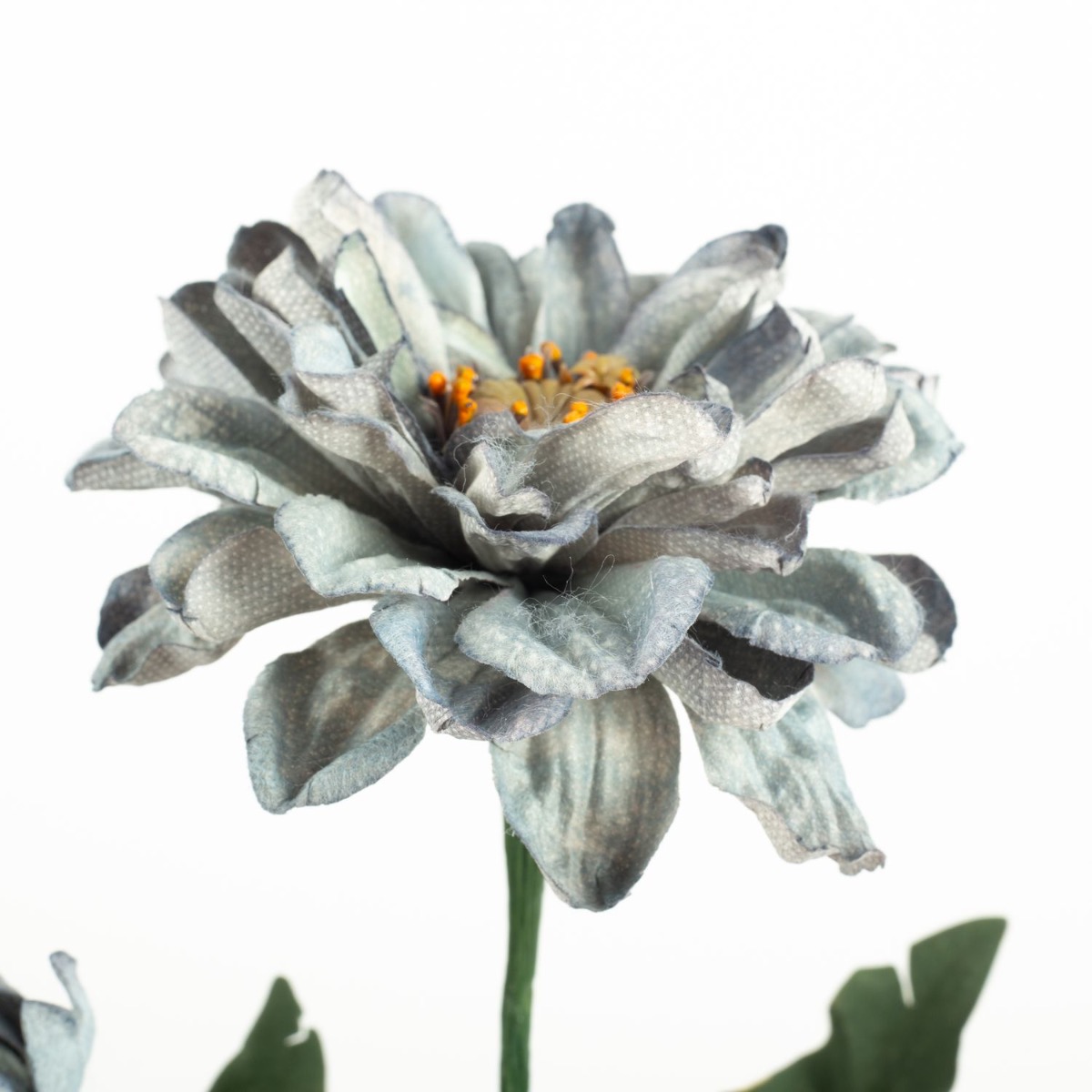 Branche fleurie décorative Zinnia GUNDISINE, collection écologique, gris-bleu, 65cm, Ø9cm
