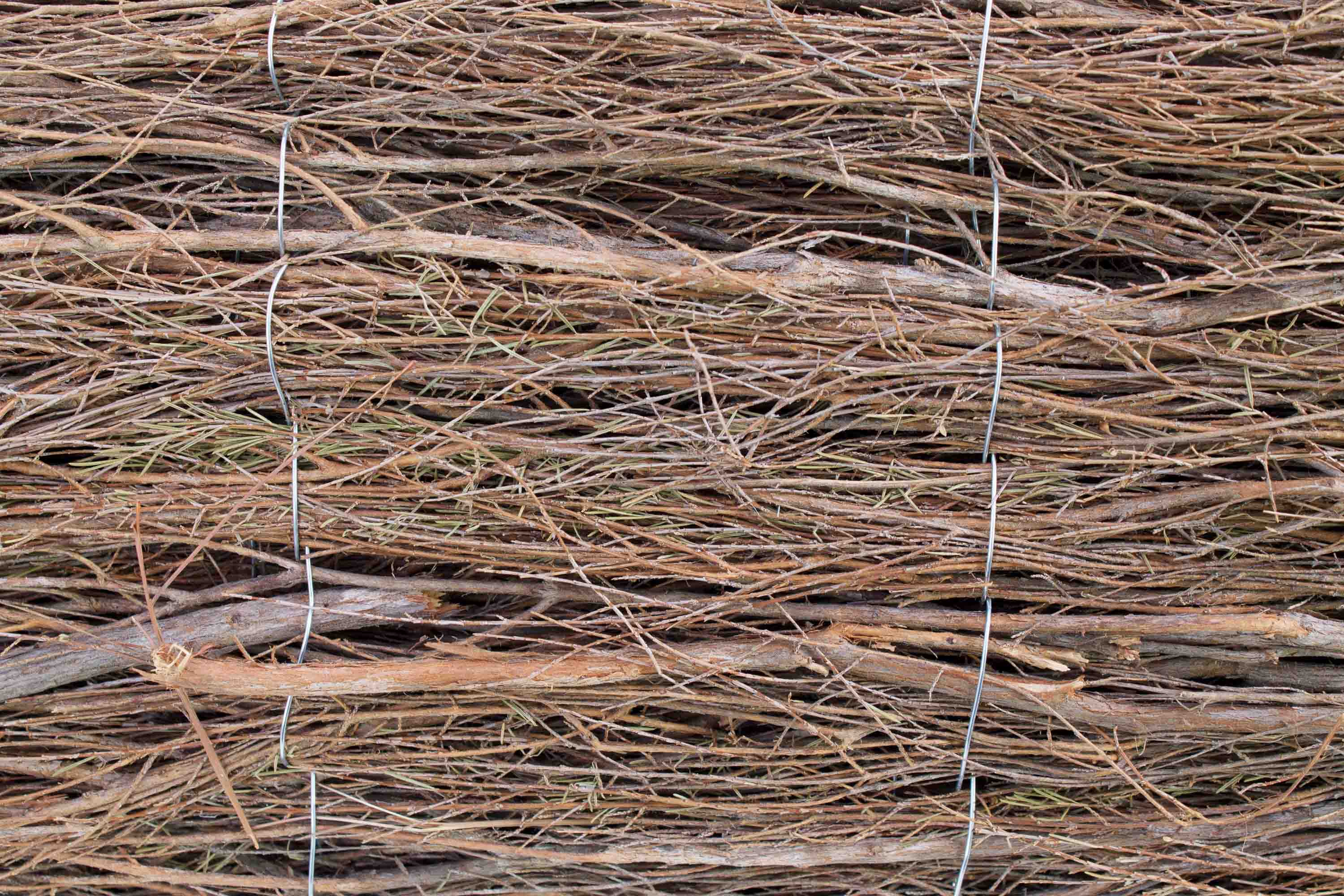 - Cette palissade est composée de branches fines et grossières de bruyère solidement nattées à l'aide d'un fil métallique galvanisé