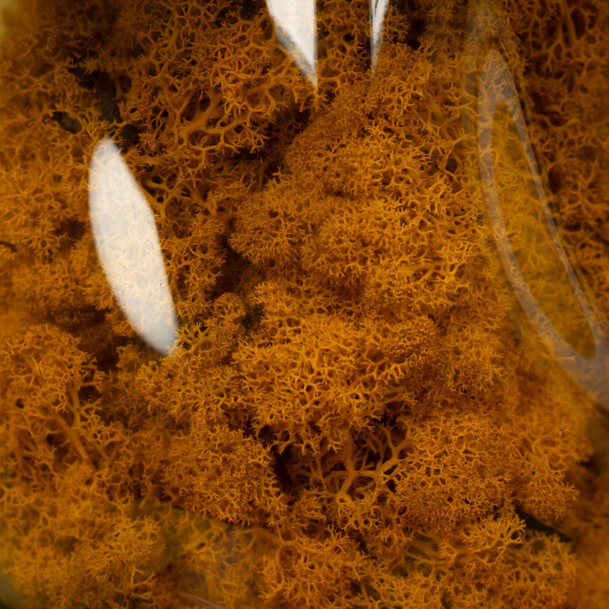 Conseil d'aménagement : D'abord on place le vulpin dans le vase. La mousse naturelle orange est ensuite mise dans le vase, de manière à ce que le piquet ne soit plus visible. La mousse sert également de support pour le piquet afin qu'il ne tombe pas sur le côté. Enfin, la couronne est posée sur le vase. Veillez à ce que l'herbe soit un peu serrée afin qu'elle ne se plie pas. Très facile à reproduire !