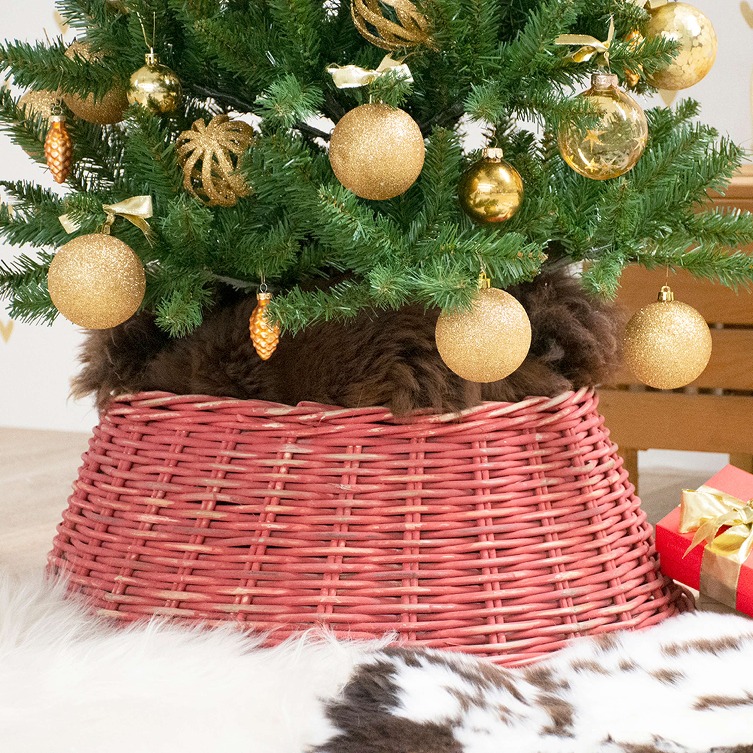 Cache-pied pour sapin MACARIO en rotin, rouge, 26cm, Ø65cm