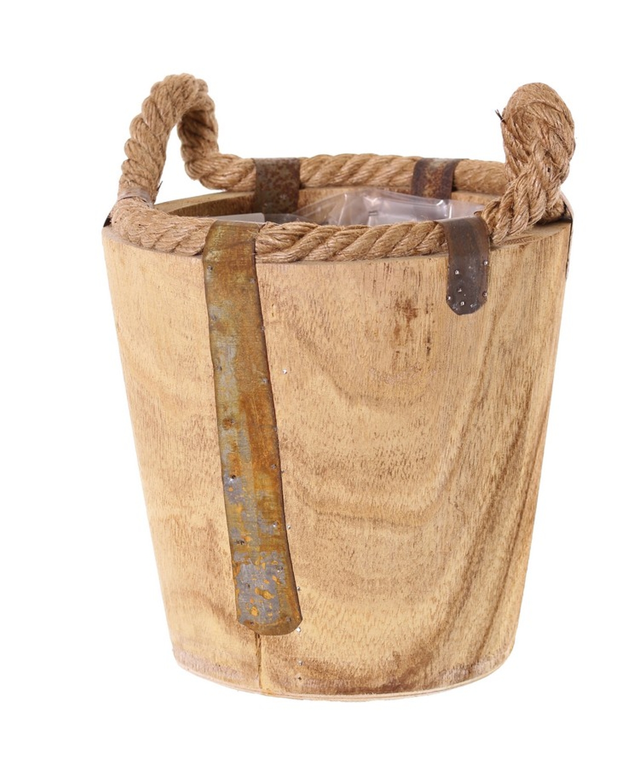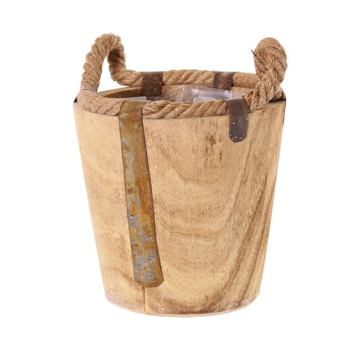 Cache-pot en bois DABIH avec poignées en corde, brun, 19cm, Ø20cm