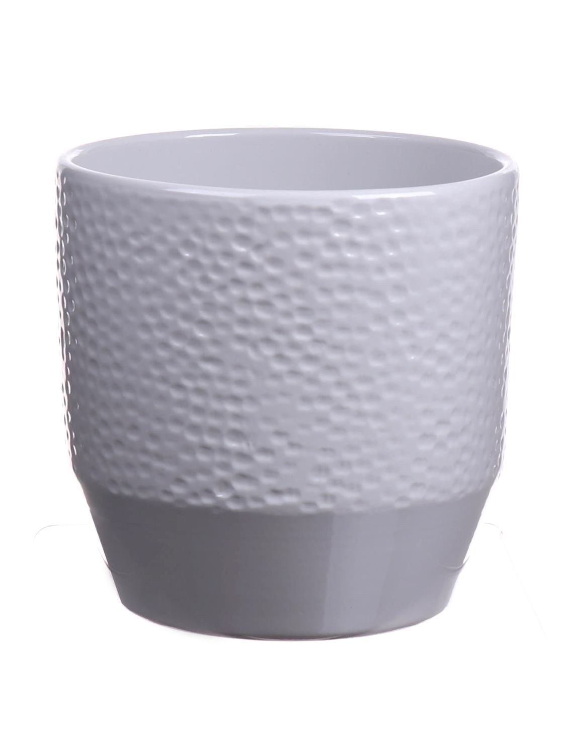 Cache-pot en céramique BIHAM, motif martelé, gris clair, 13,2cm, Ø13,5cm