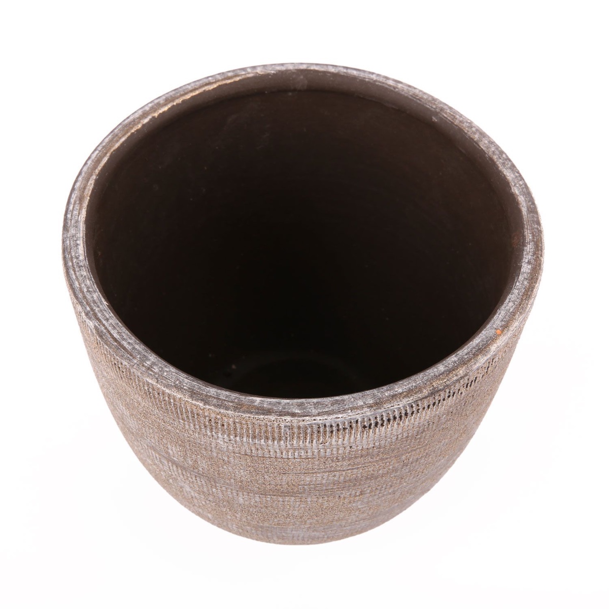 Cache-pot en céramique KAMUNI, rayures verticales, gris-vert, 21cm, Ø23cm