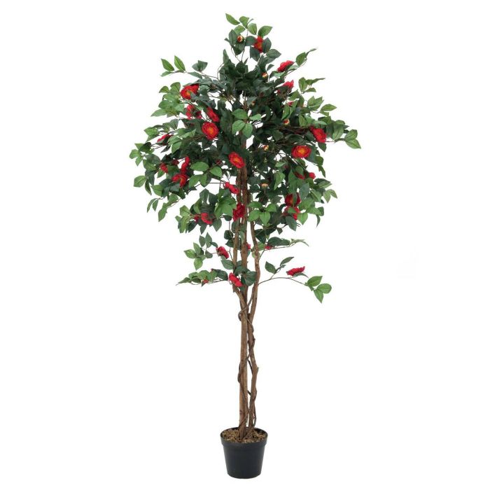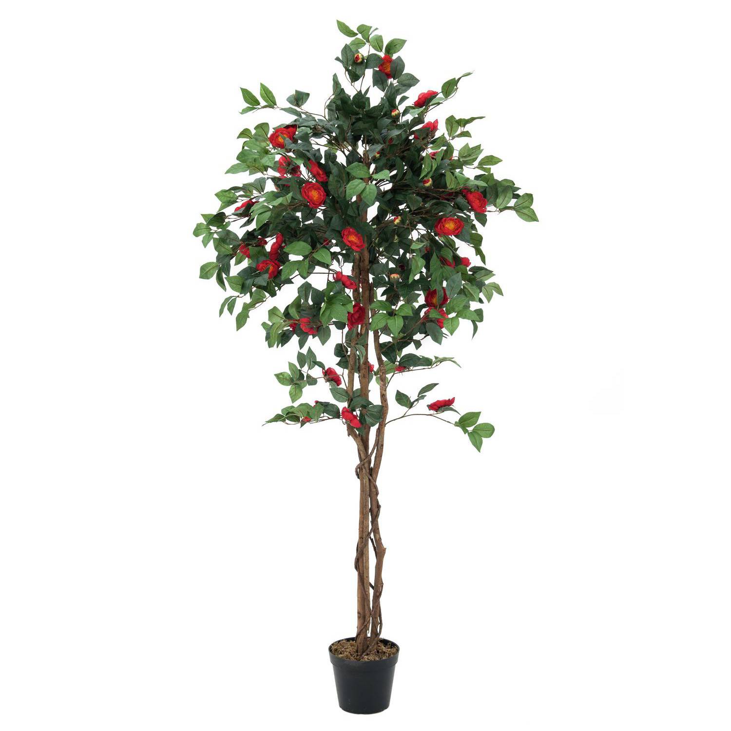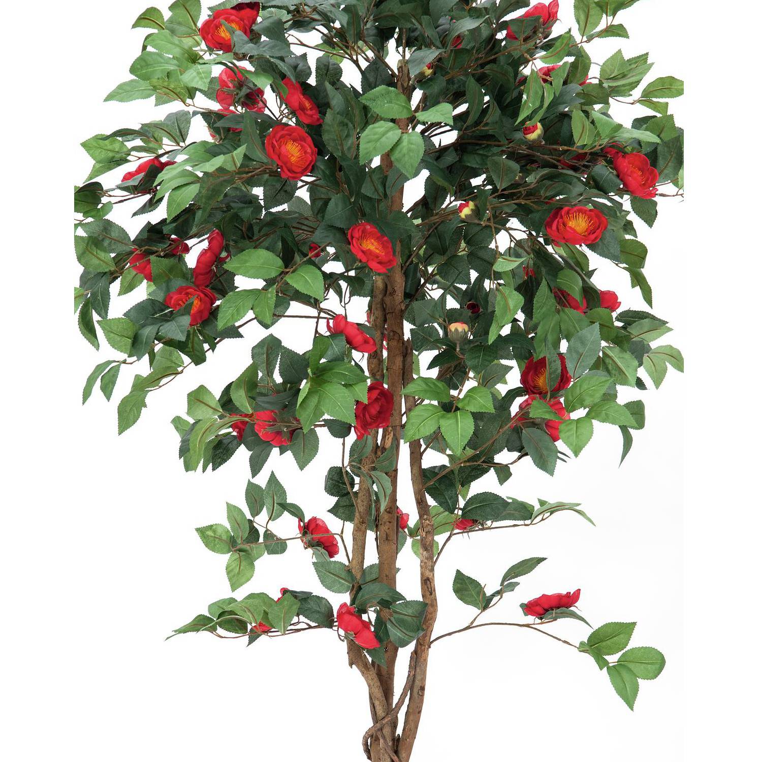Camélia artificiel orné d'environ 110 fleurs rouges et 1630 feuilles. Cet arbre artificiel est pourvu de 3 troncs qui sont entourés de 3 lianes et mesure au total environ 180 cm de haut.