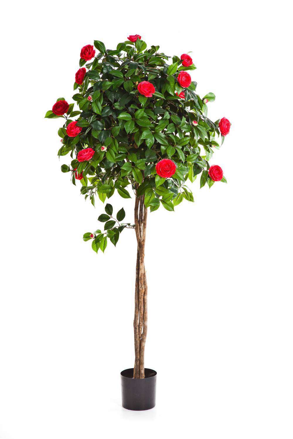Arbuste artificiel pourvu de 890 feuilles et environ 105 fleurs. Ce camélia artificiel mesure au total environ 130 cm de haut.