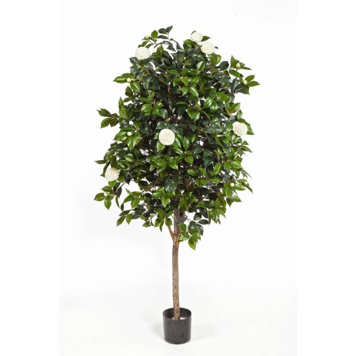 Camélia en plastique RIKA, vrai tronc, fleurs, blanc, 170cm