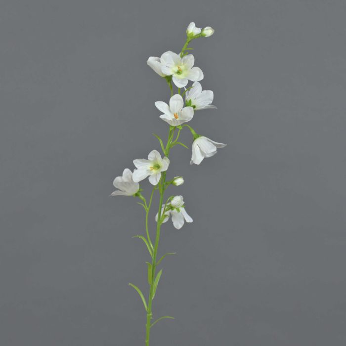 Jolie campanule artificielle (Campanula) pourvue de 8 fleurs blanches et mesurant au total environ 65 cm de long.