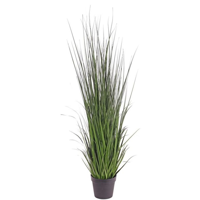 La graminée artificielle ALEXANDRINA de couleur verte a une dimension totale d'environ 135 cm et est fixée dans le pot intérieur.