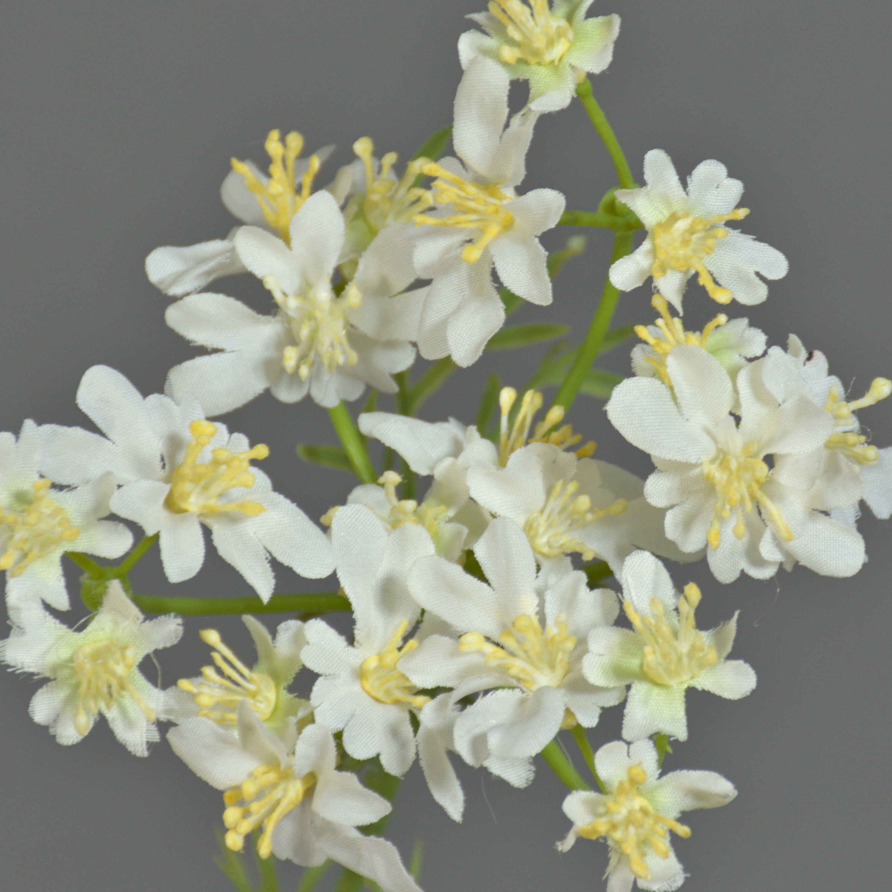 La fausse branche fleurie KALOMIRA de couleur blanche a une dimension totale d'environ 85 cm et est fixée sur une tige.