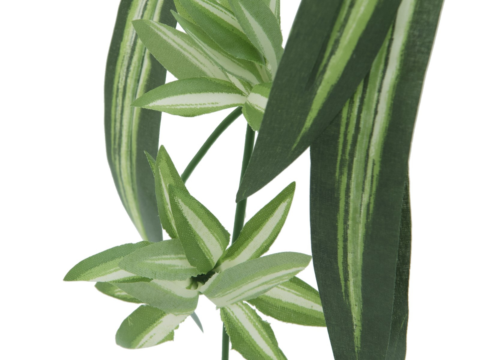 - Pourvu de feuilles pointues filigranes aux différentes nuances de vert et blanc en fibre textile de grande qualité