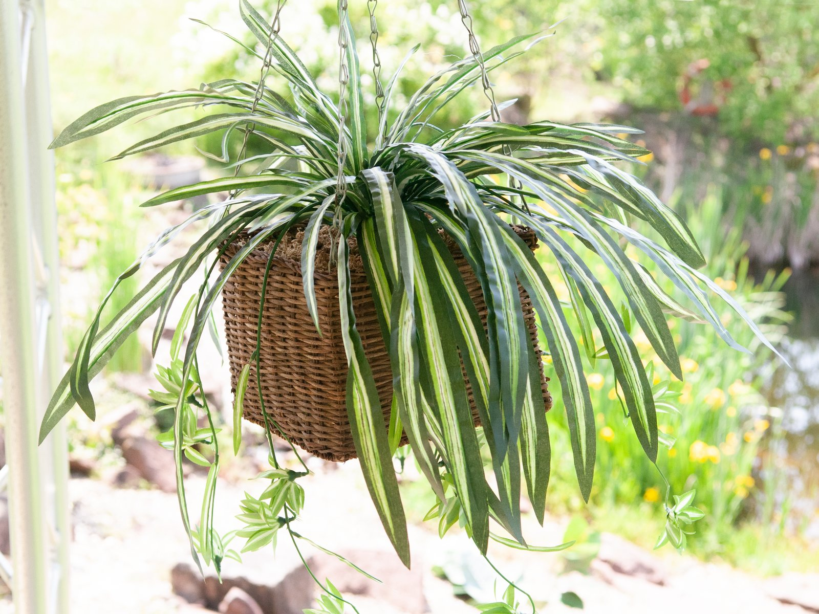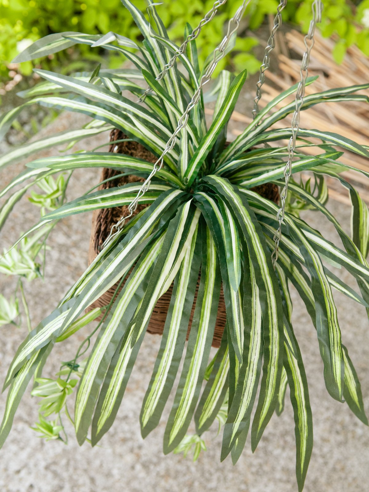 Chlorophytum en plastique MALOU, sur piquet, vert-blanc, 60cm