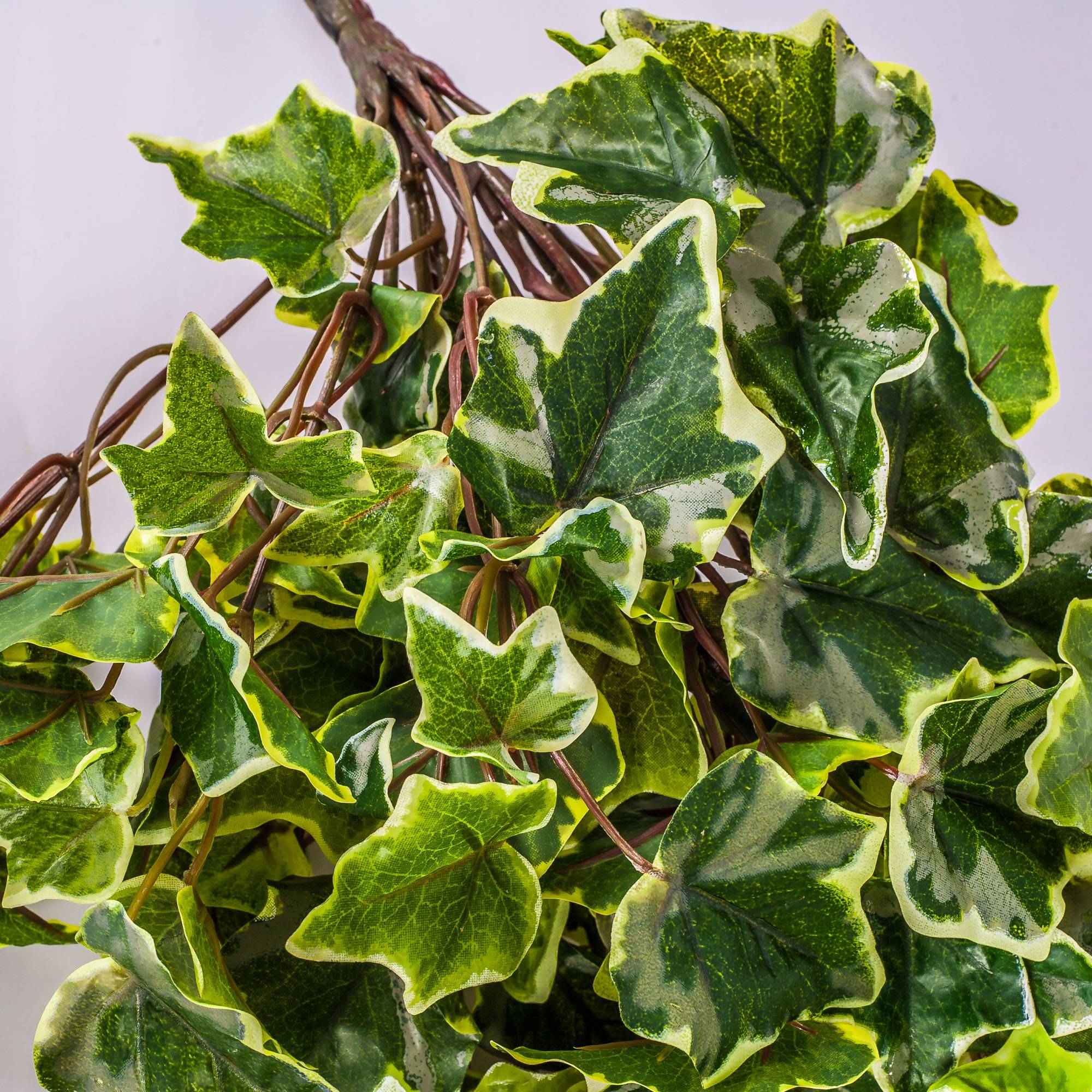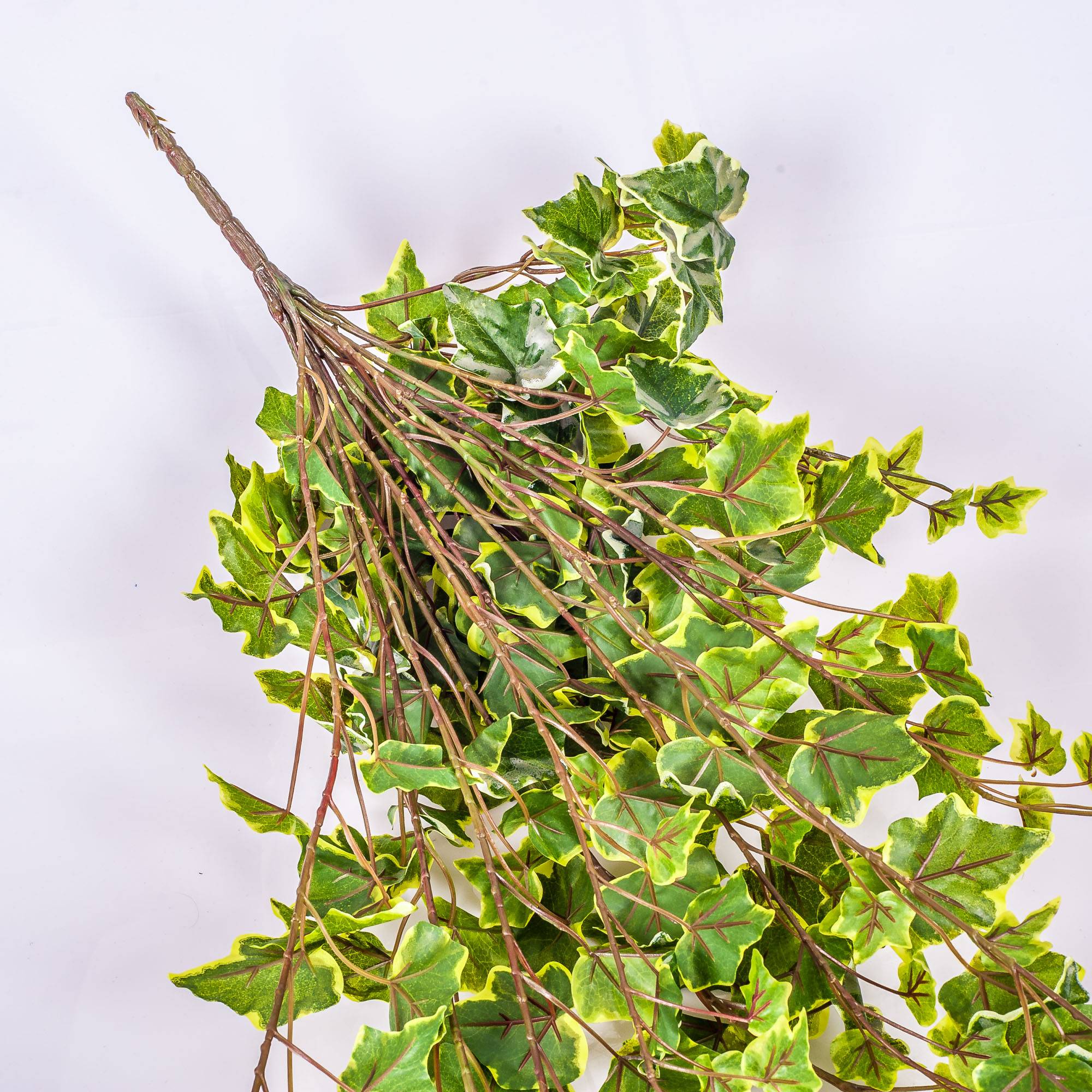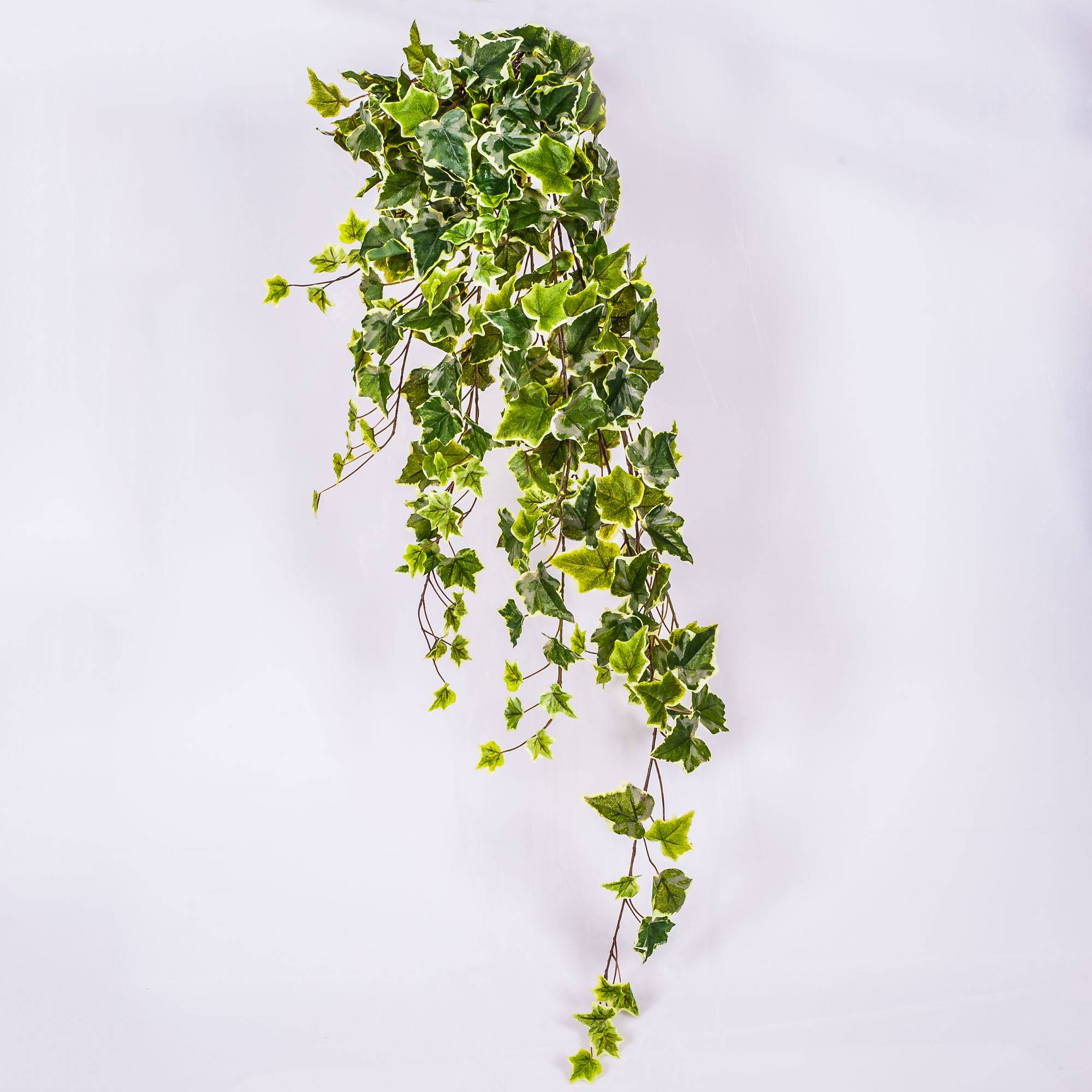 Chute de lierre artificielle constituée d'environ 350 feuilles vertes pourvues de bordures blanches. Le lierre mesure au total environ 100 cm de long et sera une décoration parfaite pour la salle de bain ou la cuisine.