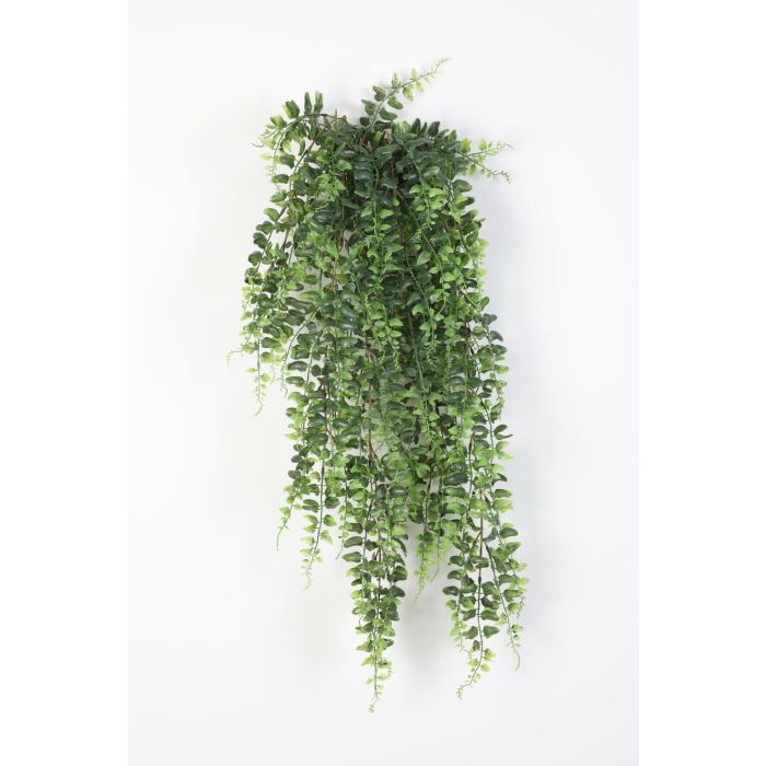 Fougère artificielle PORRIMA de couleur verte. Idéalement adaptée à un panier suspendu.