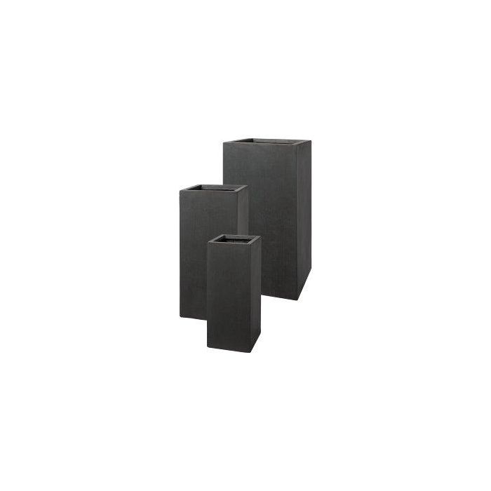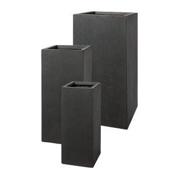 Colonne à plantes angulaire KIRIMA, 3 pièces, fibre de verre, anthracite, 20x20x50cm, 26x26x60cm, 33x33x70cm