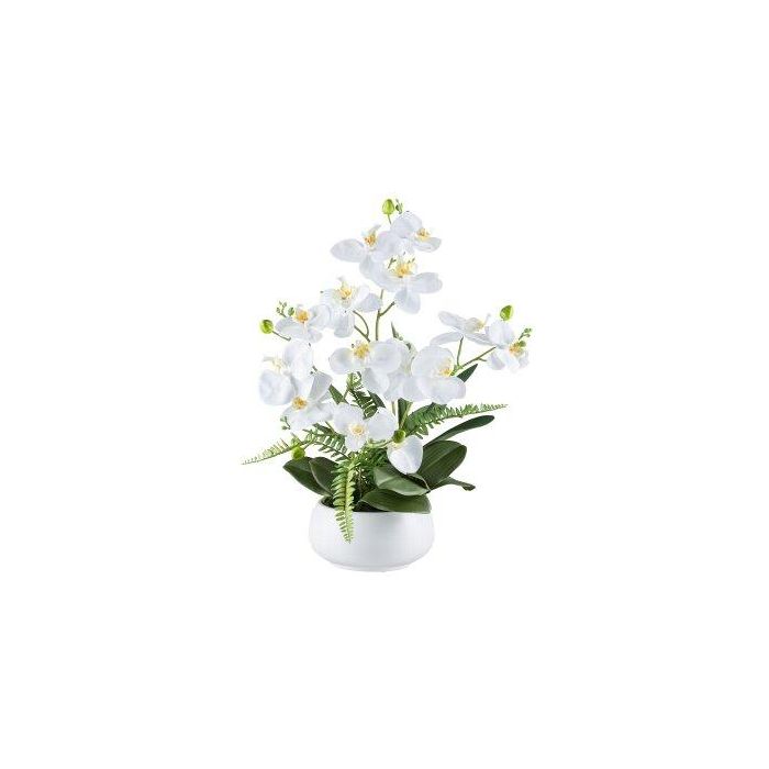 Composition florale artificielle d'orchidée et de fougère SALTER dans une coupe céramique, blanc, 55cm