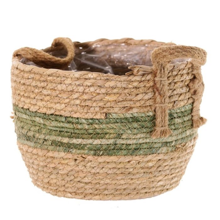 Corbeille / cache-pot UPALI, zostère liée, 2 poignées, beige-vert, 26cm, Ø30cm