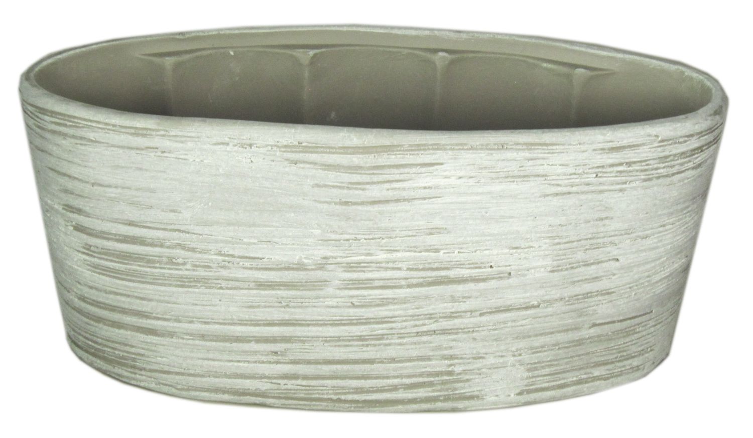 Coupe décorative en céramique ADELPHOS, ovale, rainures, blanc-gris clair, 33x15x15cm