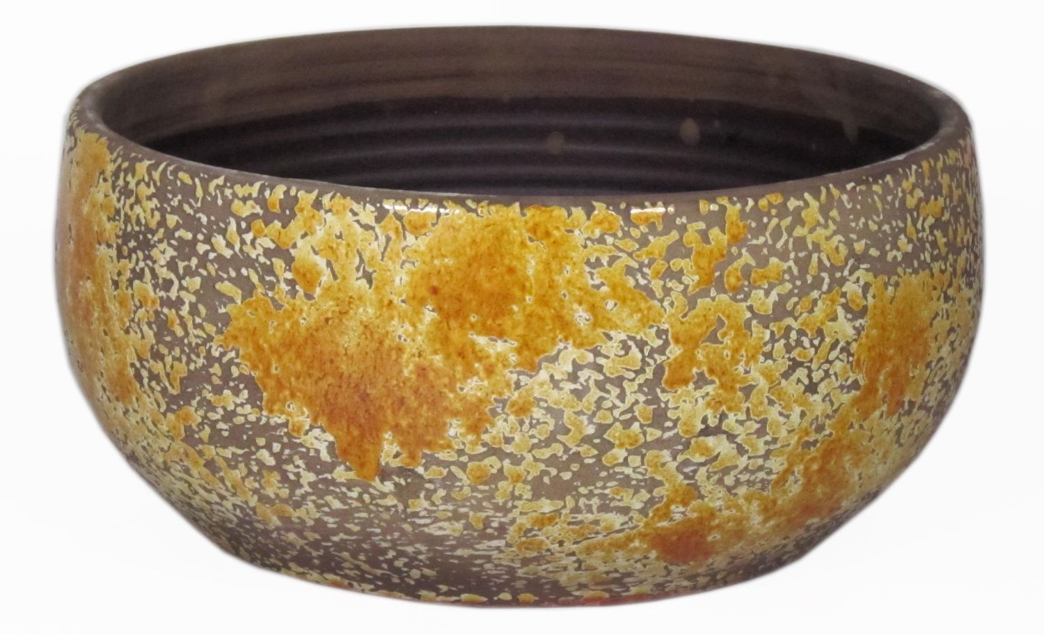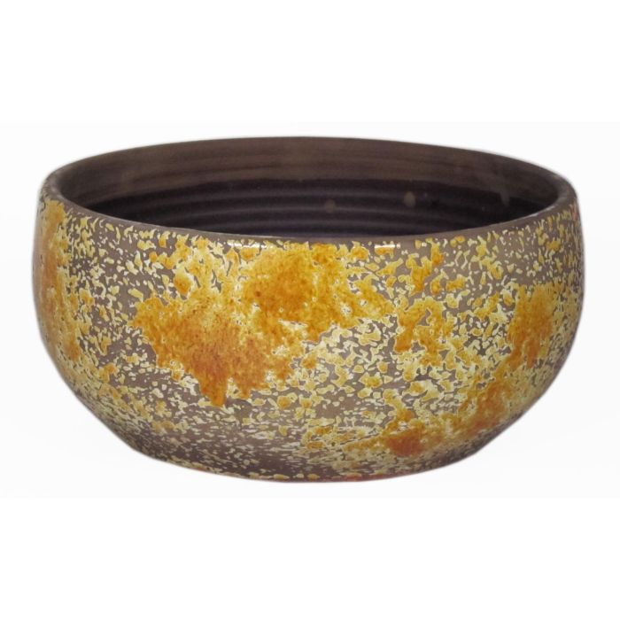 Coupe décorative en céramique TSCHIL, rustique, dégradé, jaune ocre-marron, 13cm, Ø28cm