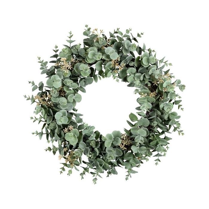 Couronne artificielle d'eucalyptus LEMTI avec des fleurs, gris-vert, Ø40cm
