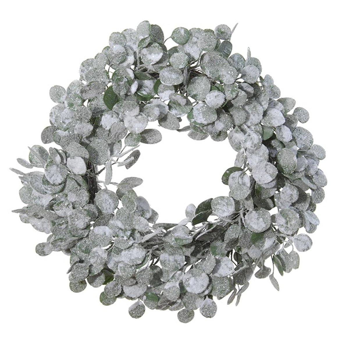 Couronne artificielle d'eucalyptus PHONG, givré, blanc-vert, Ø45cm