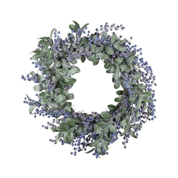 Couronne artificielle de gaultheria BIRLO avec des baies, bleu, Ø50cm