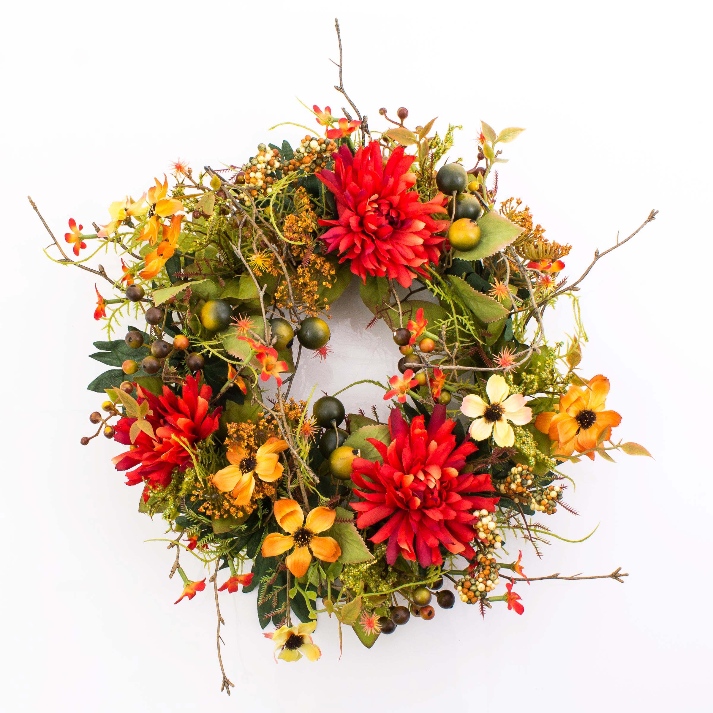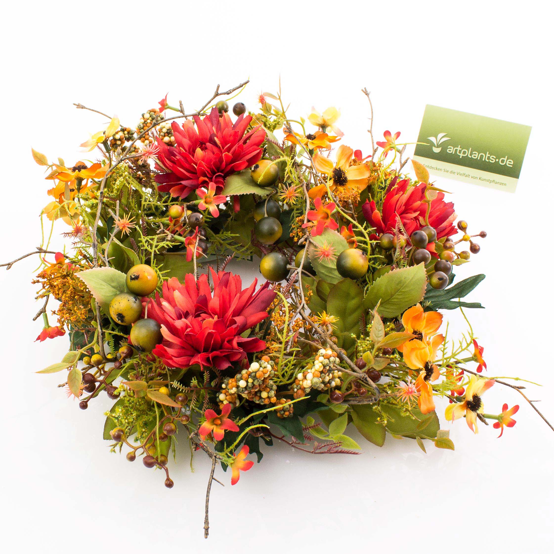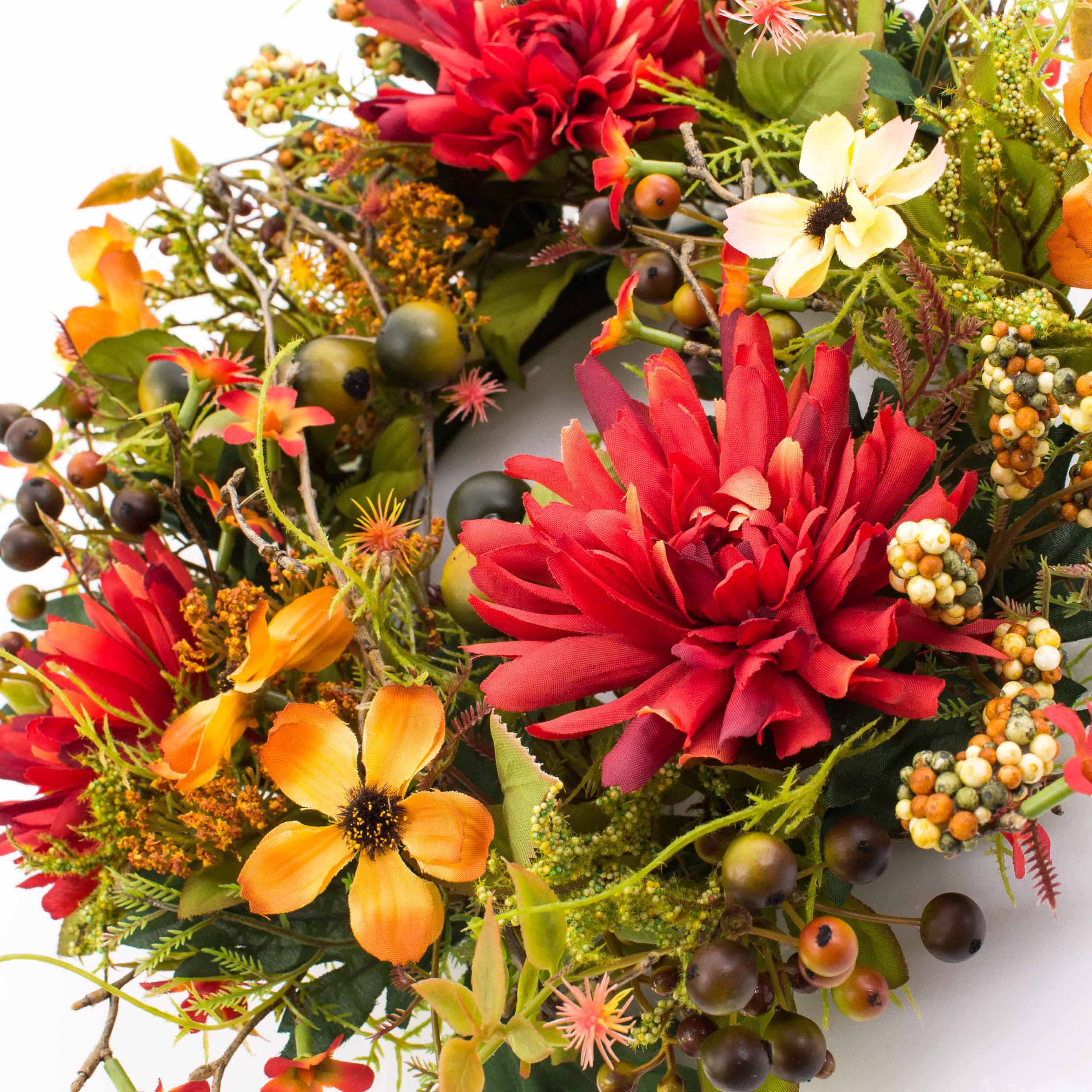 Couronne automnale artificielle WERA, chrysanthème, orange-rouge, Ø30cm