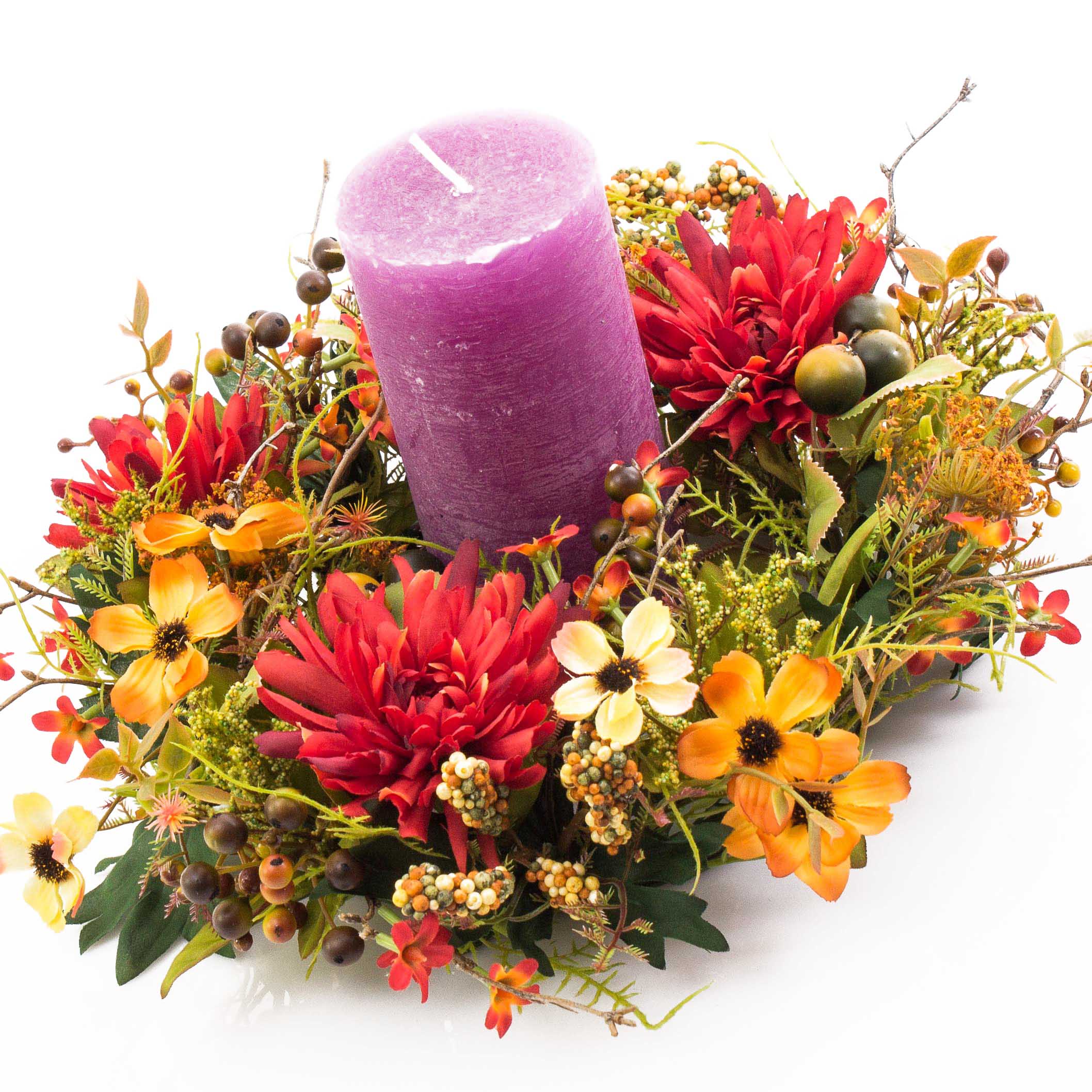 Couronne automnale mesurant environ 30 cm de diamètre. La couronne de fleurs artificielles convient parfaitement pour une décoration de table en automne.