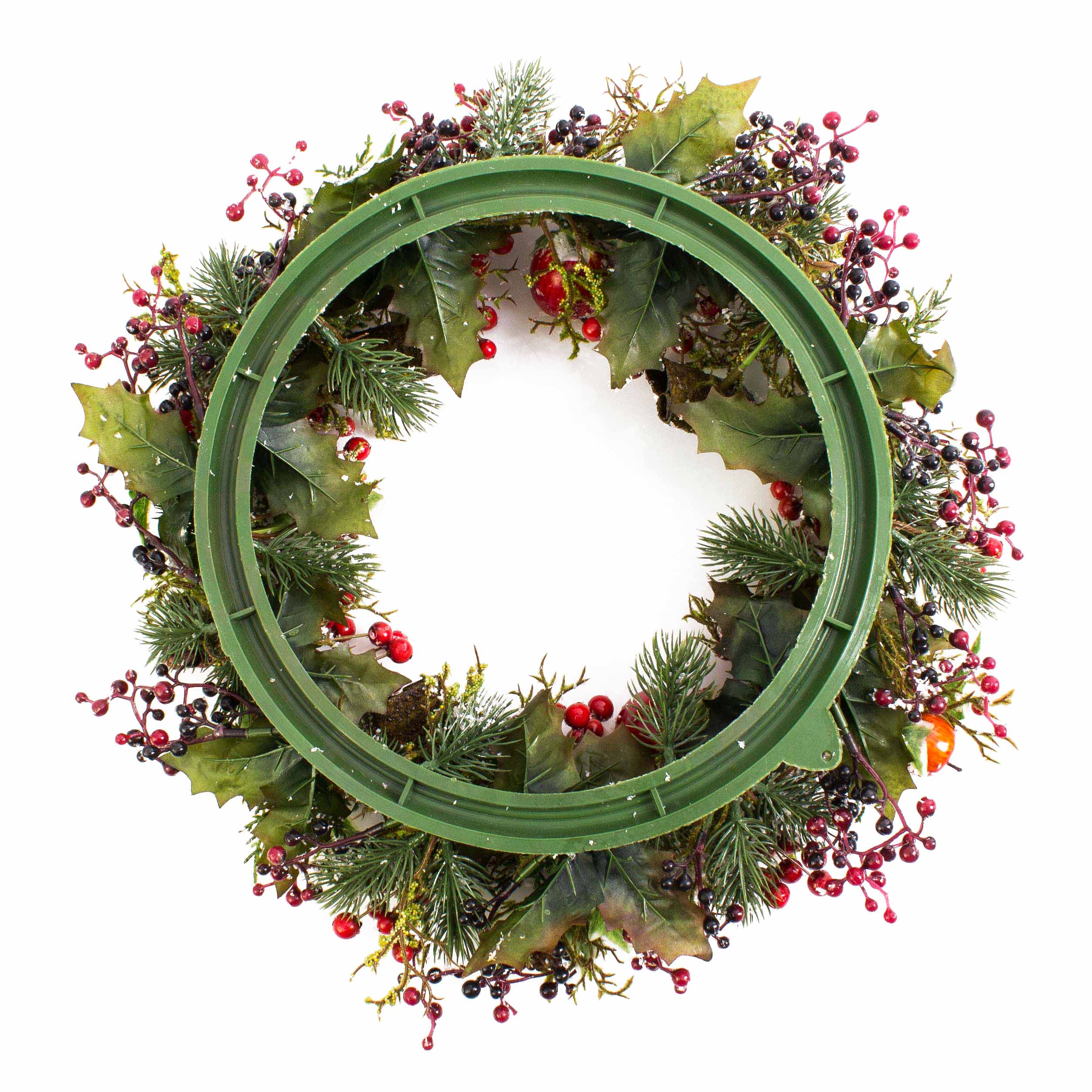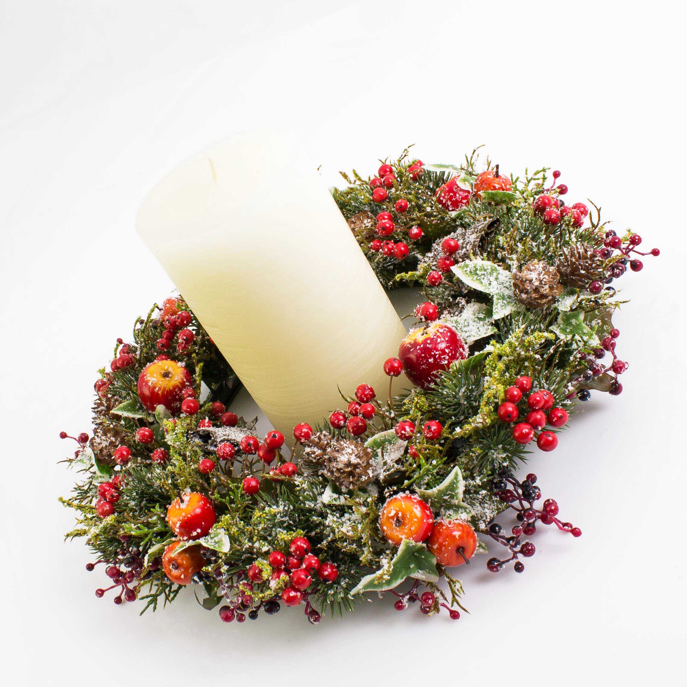 - Fixée sur un anneau (ø 25,5 cm) en matière plastique avec un trou pour suspendre la couronne