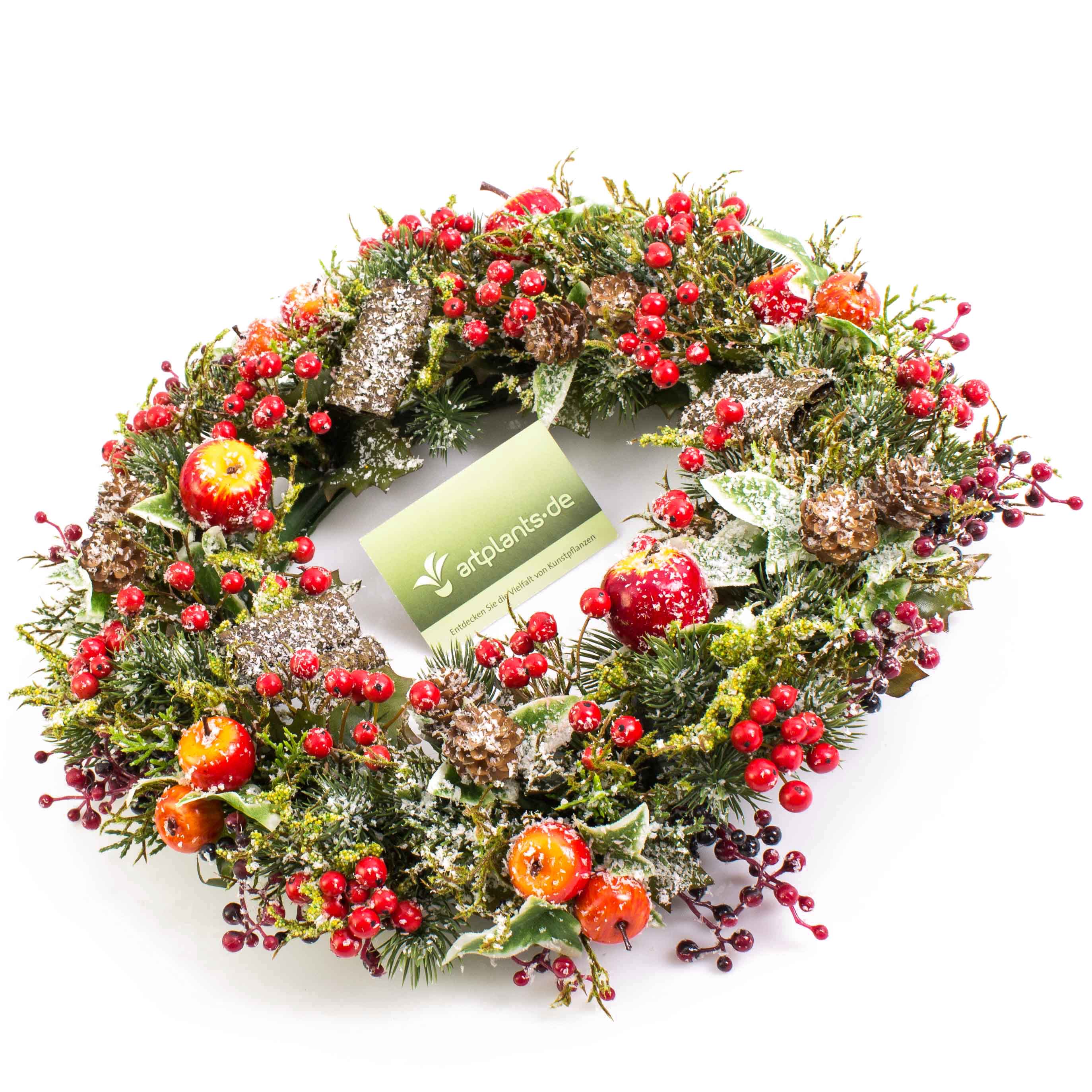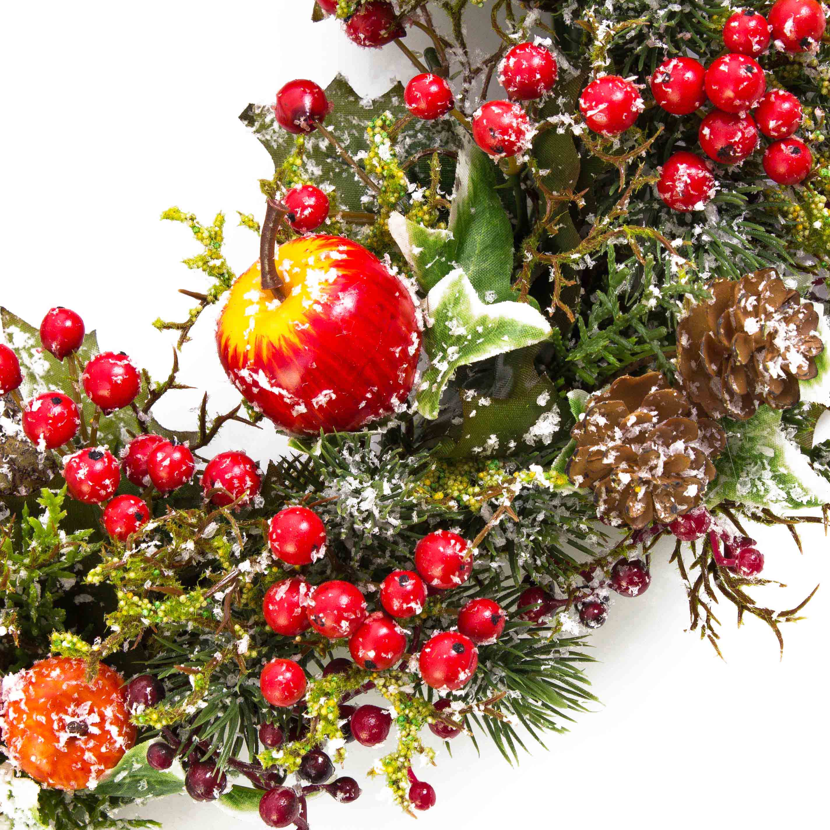 Couronne d'hiver artificielle JARLE, fruits, pommes de pin, enneigé, Ø35cm