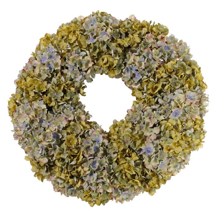 Couronne d'hortensias artificielle DARDANOS, vert-bleu, Ø45cm