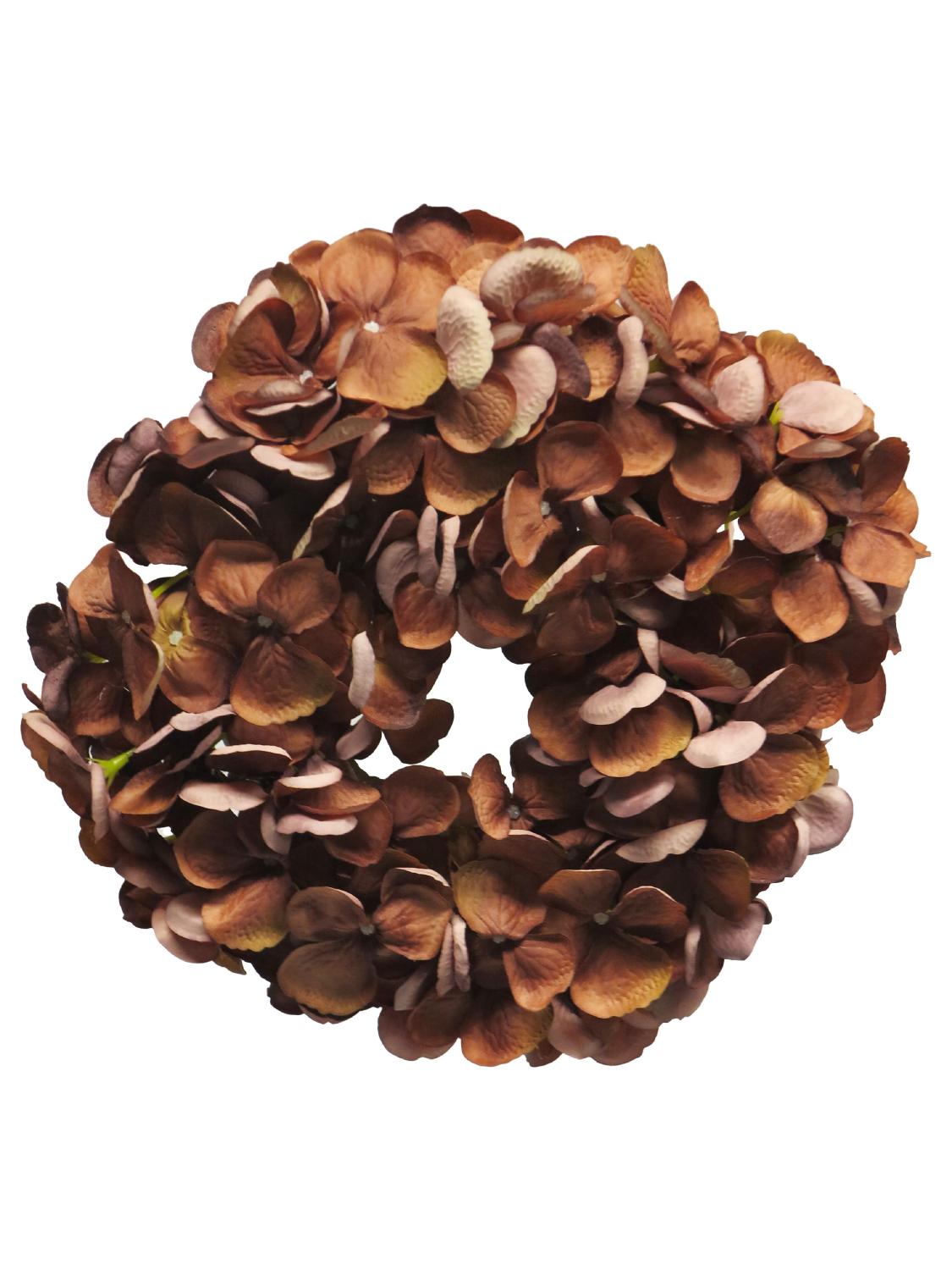 Couronne d'hortensias en tissu YANEN, brun, Ø25cm