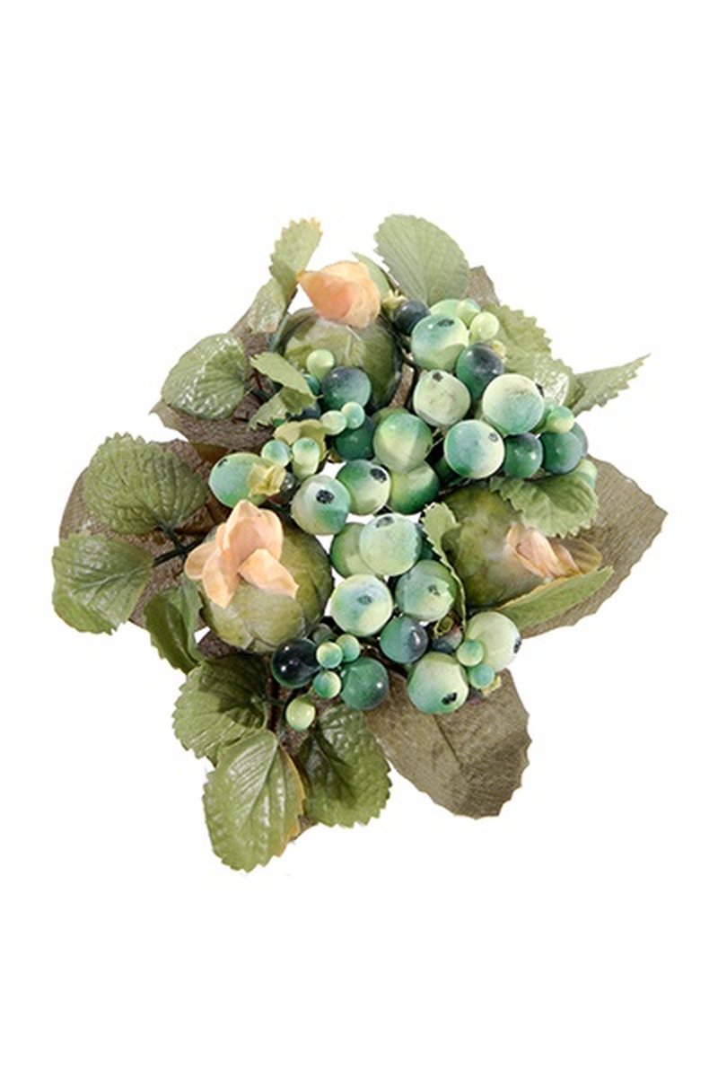 Couronne de bougie décorative STELLAN avec symphorines, vert-bleu, Ø10cm