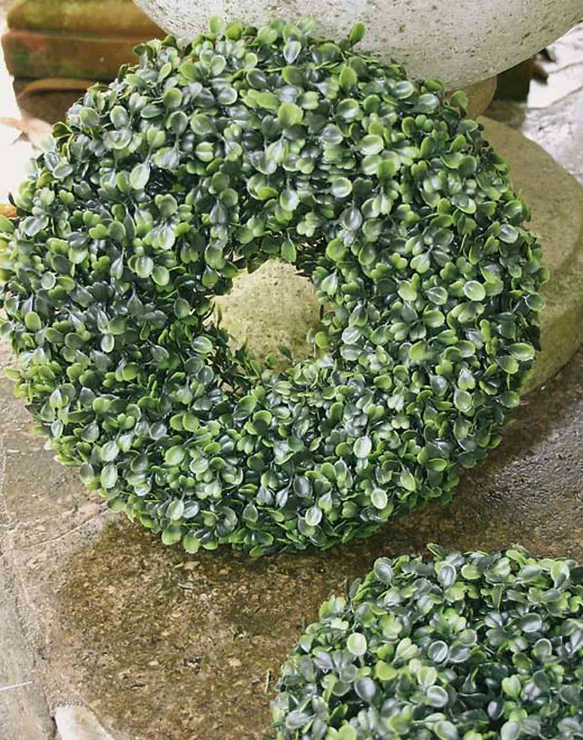 Couronne de buis artificielle HEINZ avec des feuilles vertes de grande qualité, pour décorer un mur ou une porte d'entrée, elle peut etre aggrémentée selon vos envies.