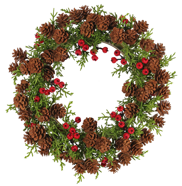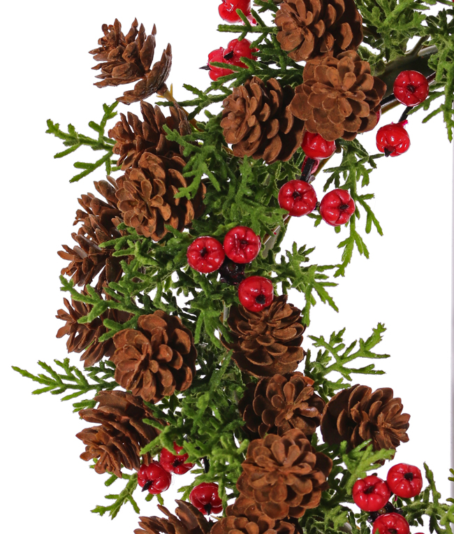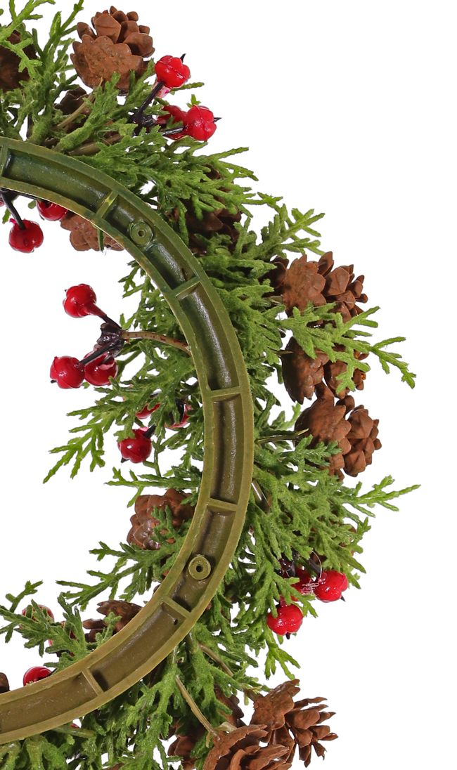 Couronne de cyprès artificielle TAVIL, pommes de pin, baies, vert-brun, 25cm