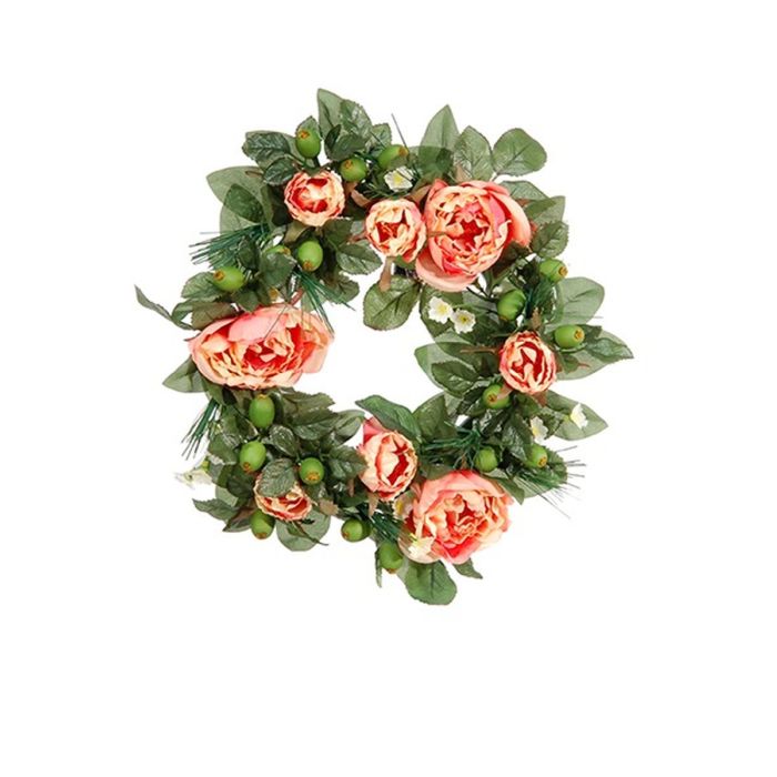 Couronne de fleurs artificielles de pivoine SOLANI, pin, saumon-rose, Ø15cm