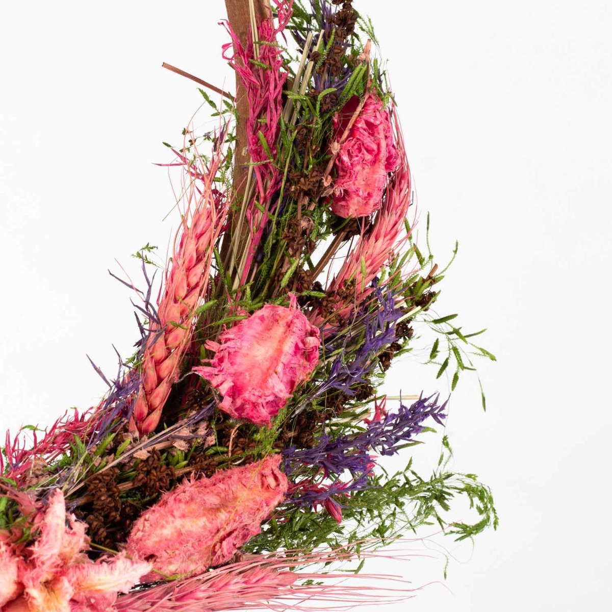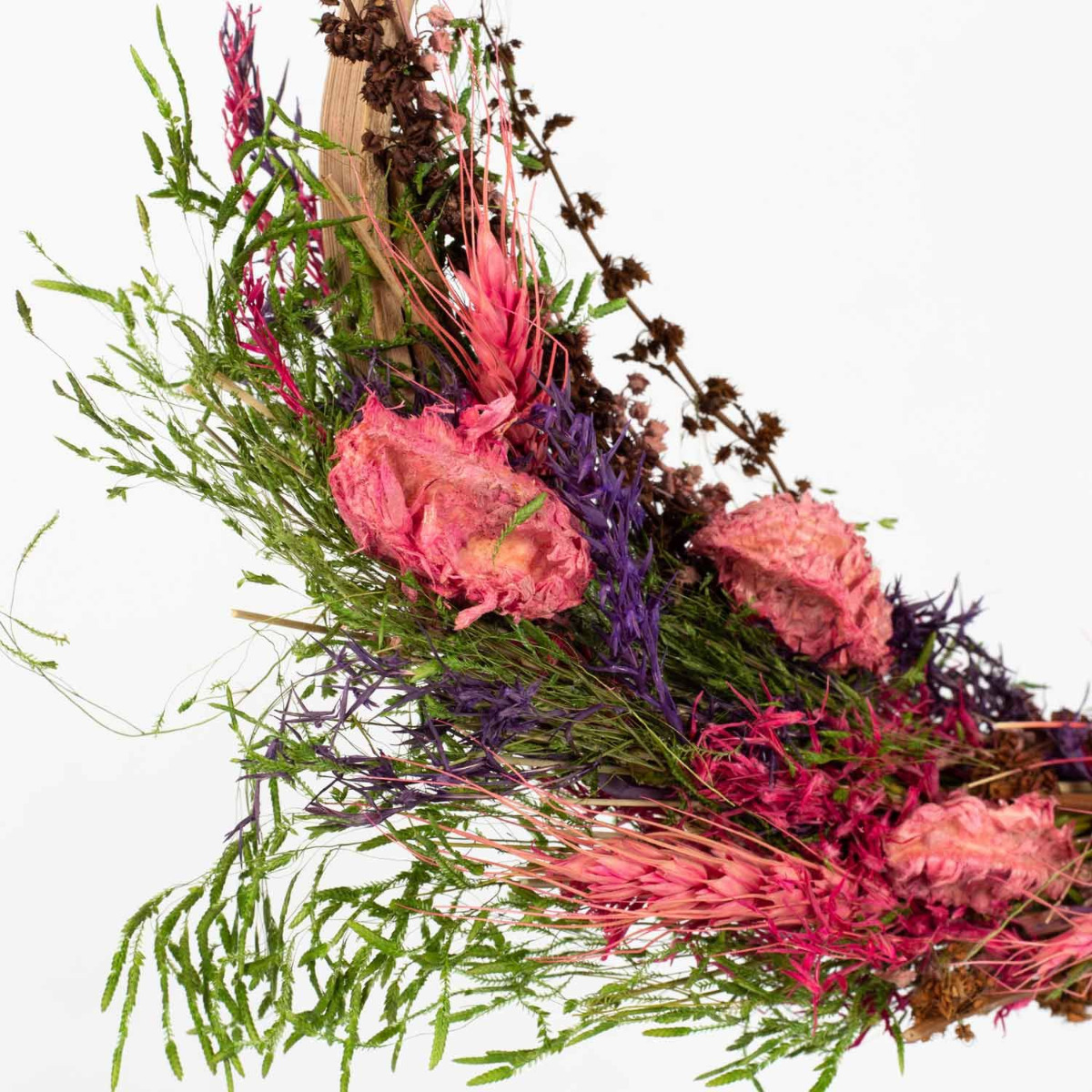 - Arrangement composé de différentes fleurs séchées de couleur fuchsia-lilas