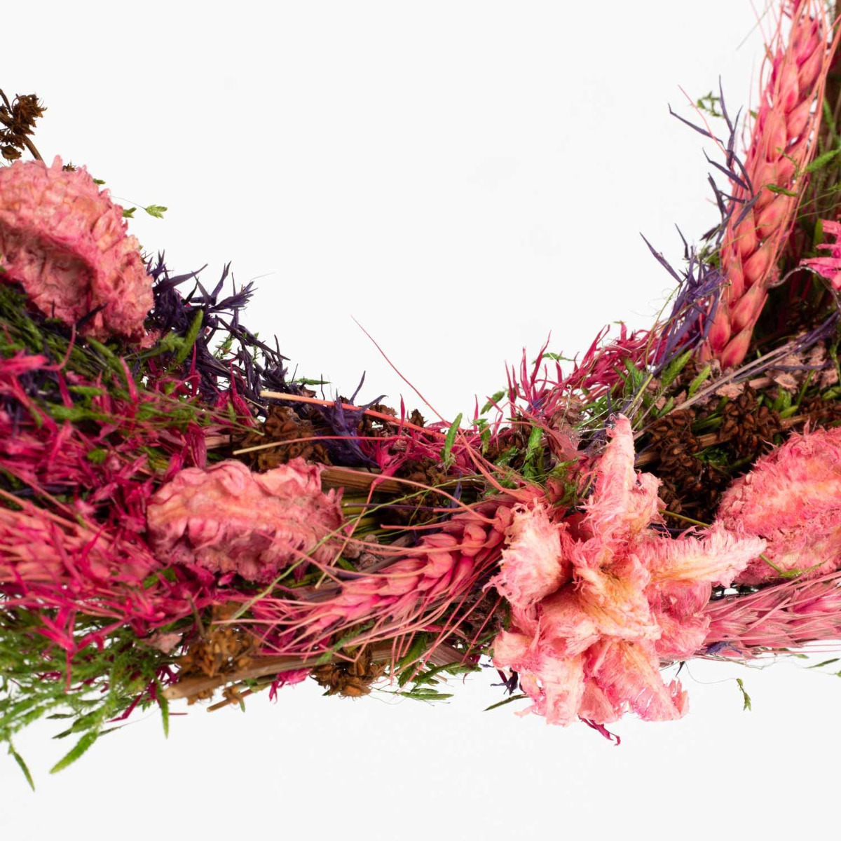 Couronne de fleurs séchées GALENO sur anneau, fuchsia-lilas, 36,5cm, Ø30cm