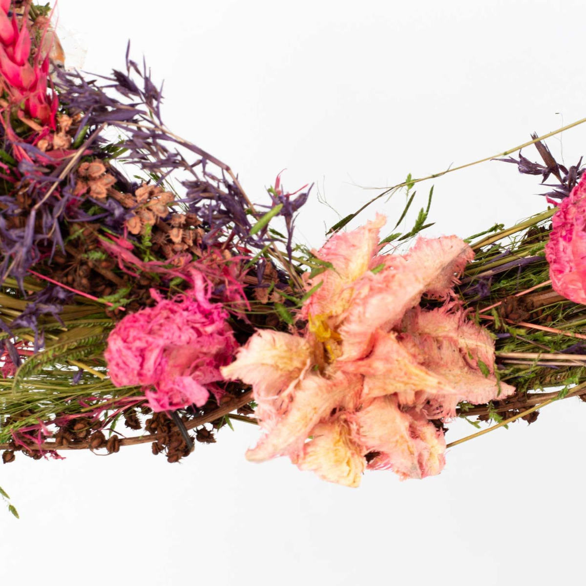 Couronne de fleurs séchées GALENO sur anneau, rose clair-fuchsia, 36,5cm, Ø30cm
