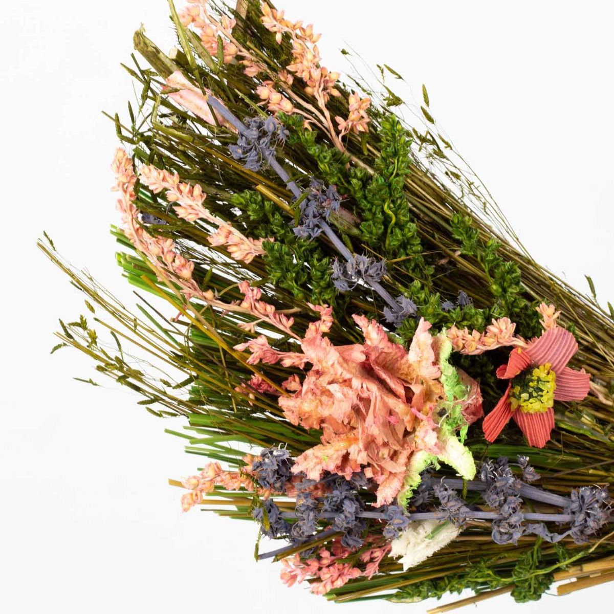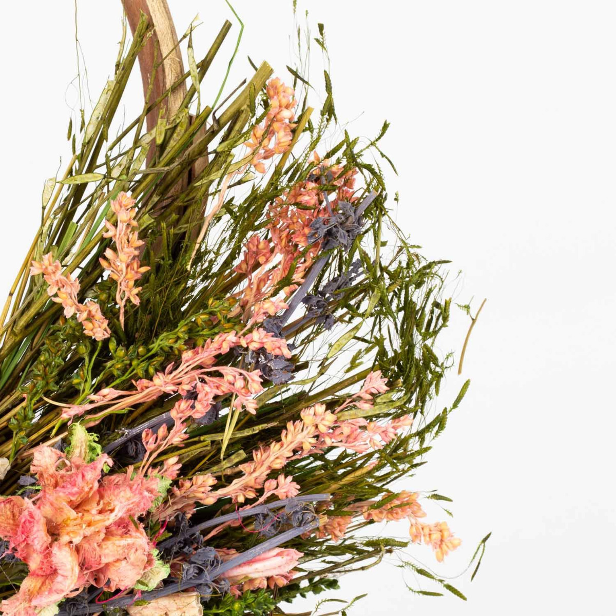 - Arrangement composé de différentes fleurs séchées de couleur rose-lilas